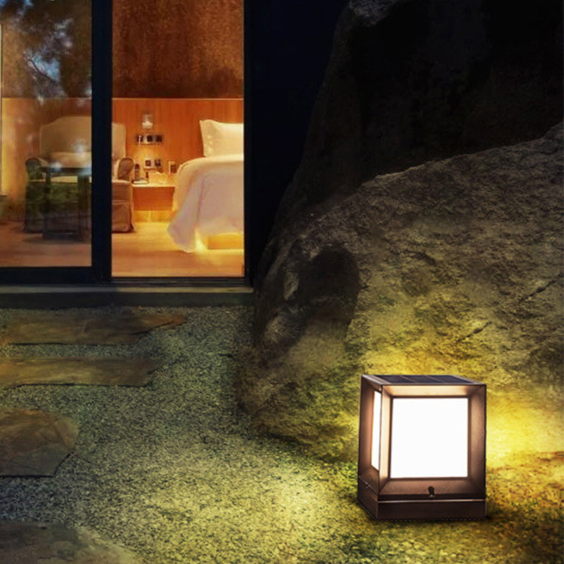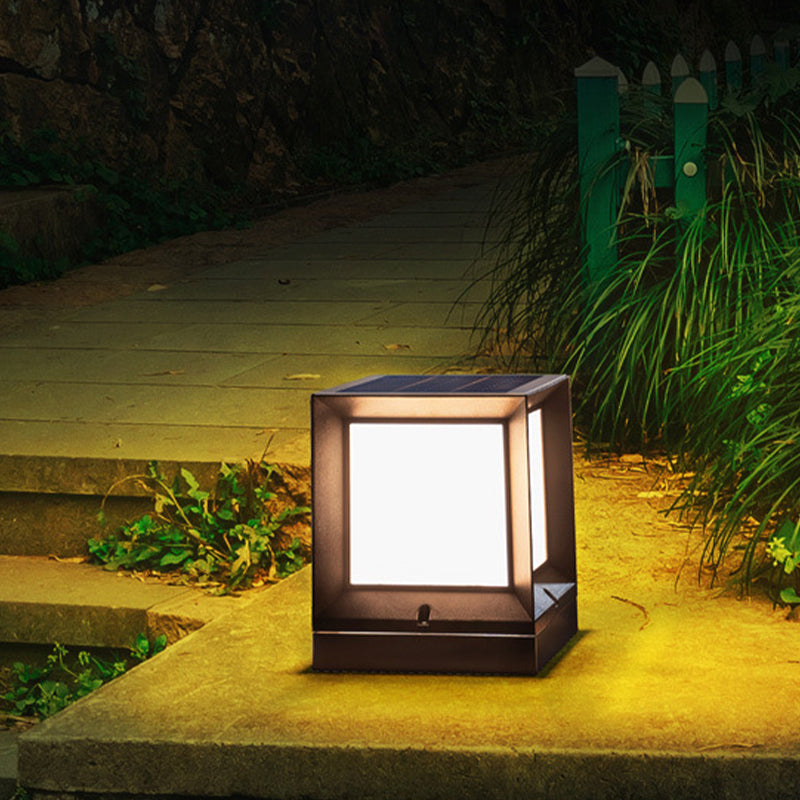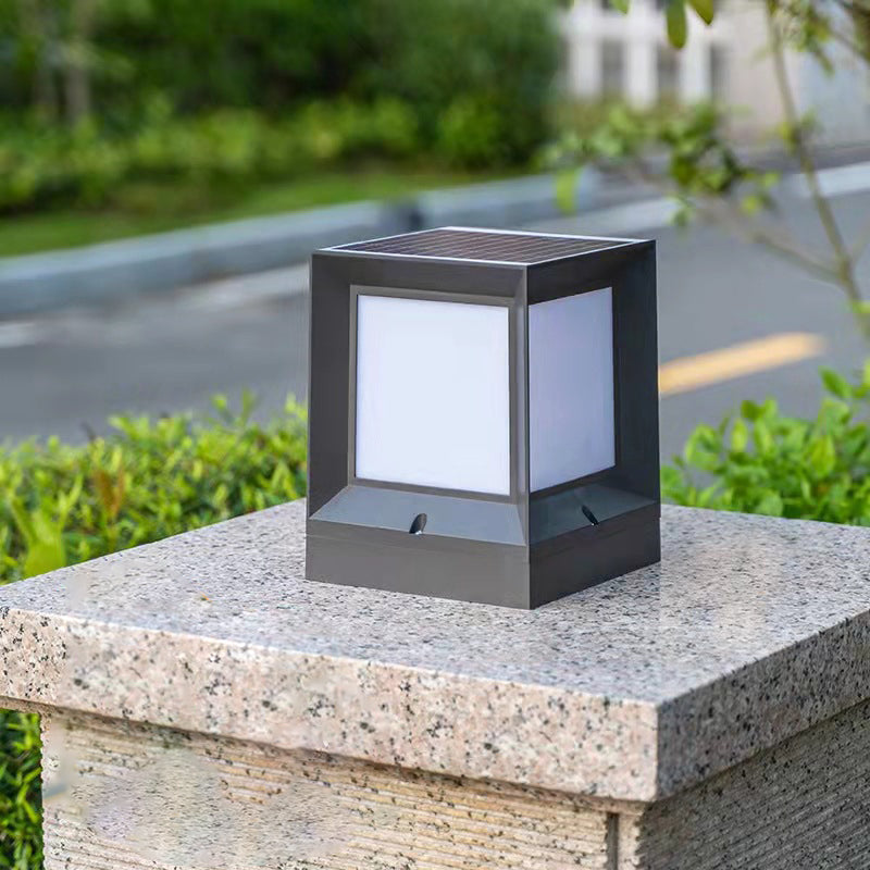 Patio Solar Energy Pillar Lamp Modern Square LED Outdoor Light
