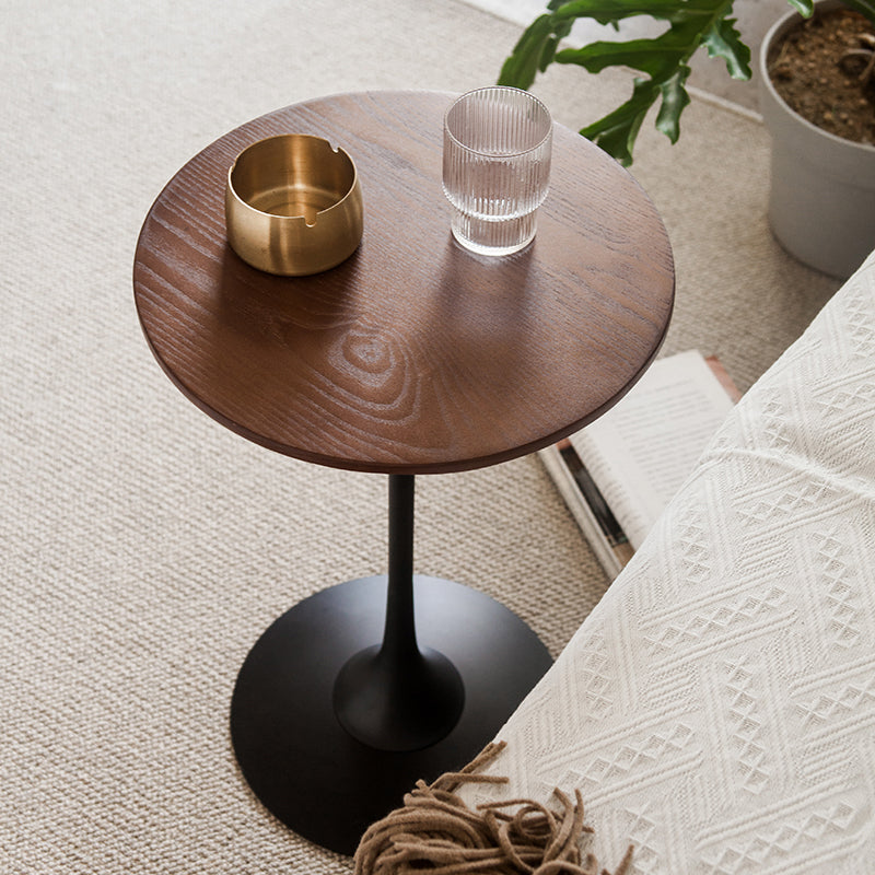 Pedestal Metal End Table Black/ Brown Round Wood Side End Table