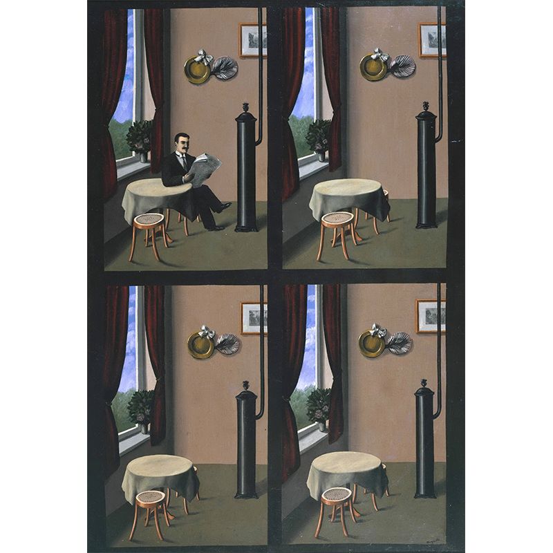 Personalized Illustration Surreal Murals with Man Reading A Newspaper Pattern in Brown