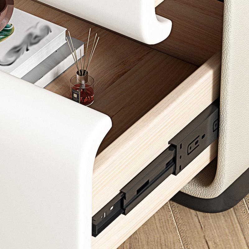 Pine Kids Bedside Table Leather Nursery Nightstand with 2 Drawers