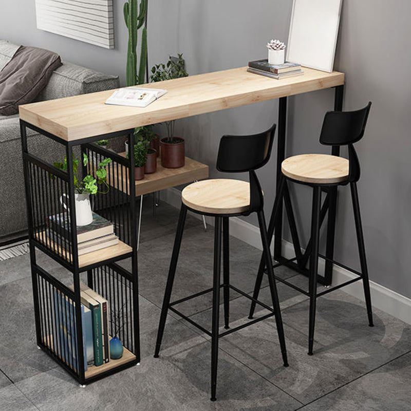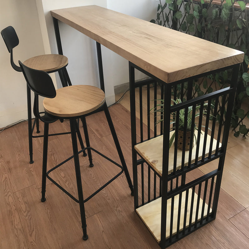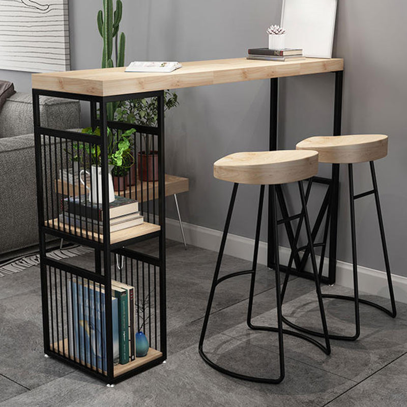 Pine Wood Bar Dining Table Modern Rectangle Bar Table with Double Pedestal for Cafe