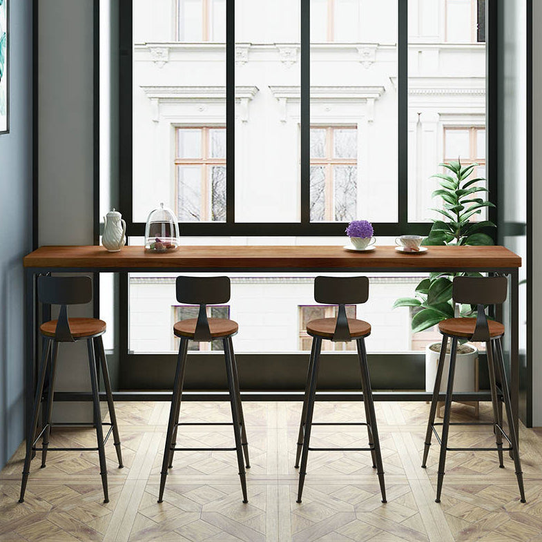Pine Wood Bar Table Industrial Bar Table with Black Trestle Base