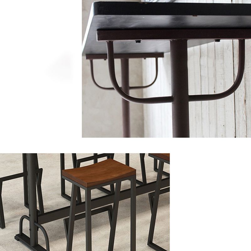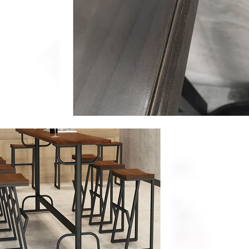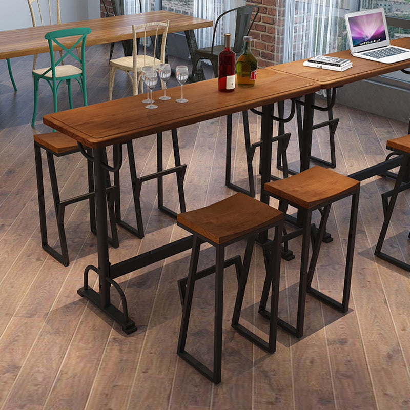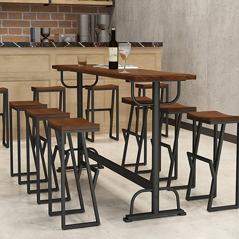 Pine Wood Bar Table Rectangle Industrial Bar Dining Table with Trestle Base in Black