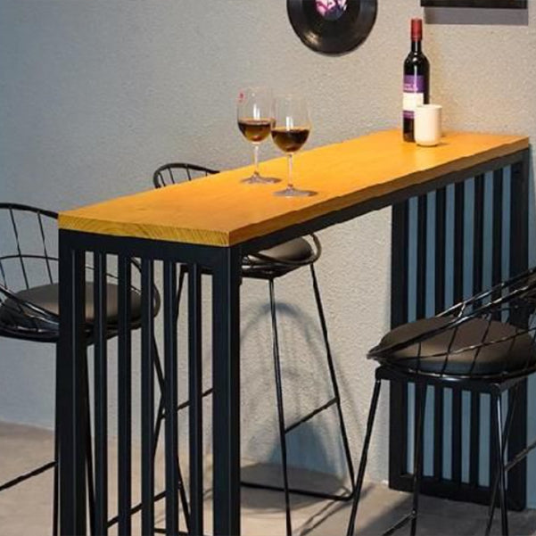 Pine Wood Bar Table Rectangle Industrial Bar Table with Sled Base