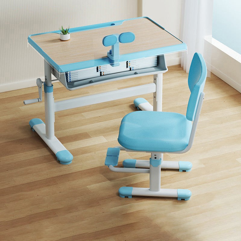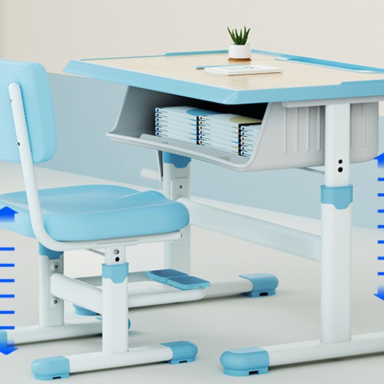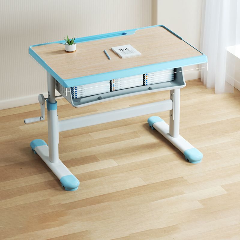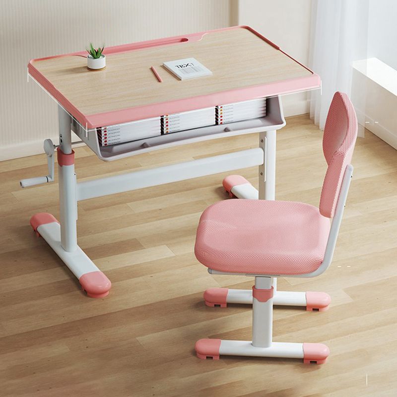 Pink and Blue Student Desk Adjustable Metal and Wood Kid's Desk