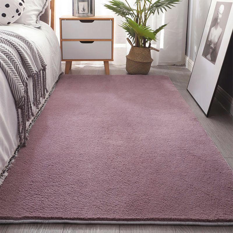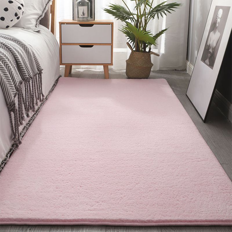Pink Bedroom Area Carpet Pure Color Polyester Area Rug Stain Resistant Washable Rug
