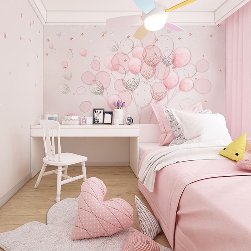 Pink Simple Mural Wallpaper Full Size Cartoon Balloon Wall Art for Girl's Bedroom