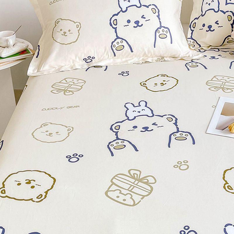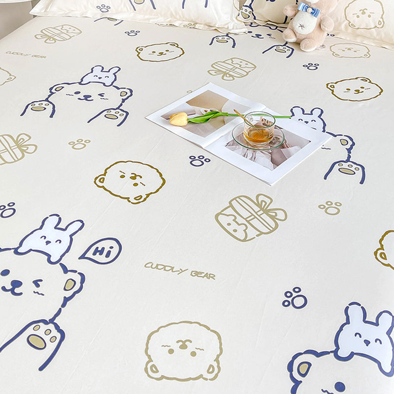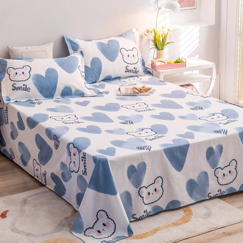 Popular Bed Sheet Cartoon Bear Patterned Fade Resistant Non-Pilling 100 Cotton Bed Sheet