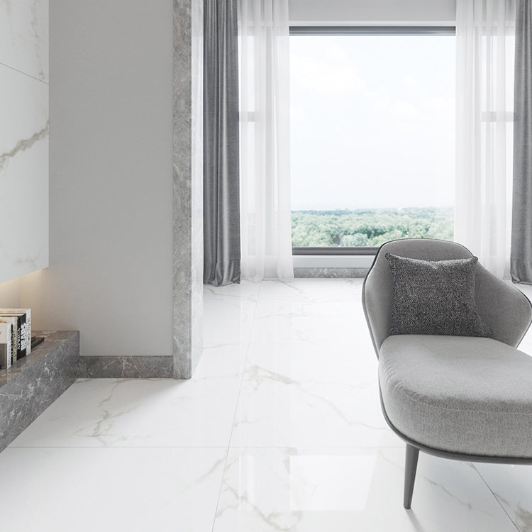 Popular Polished Porcelain Tile White Marble Patterned Square Wall Tile