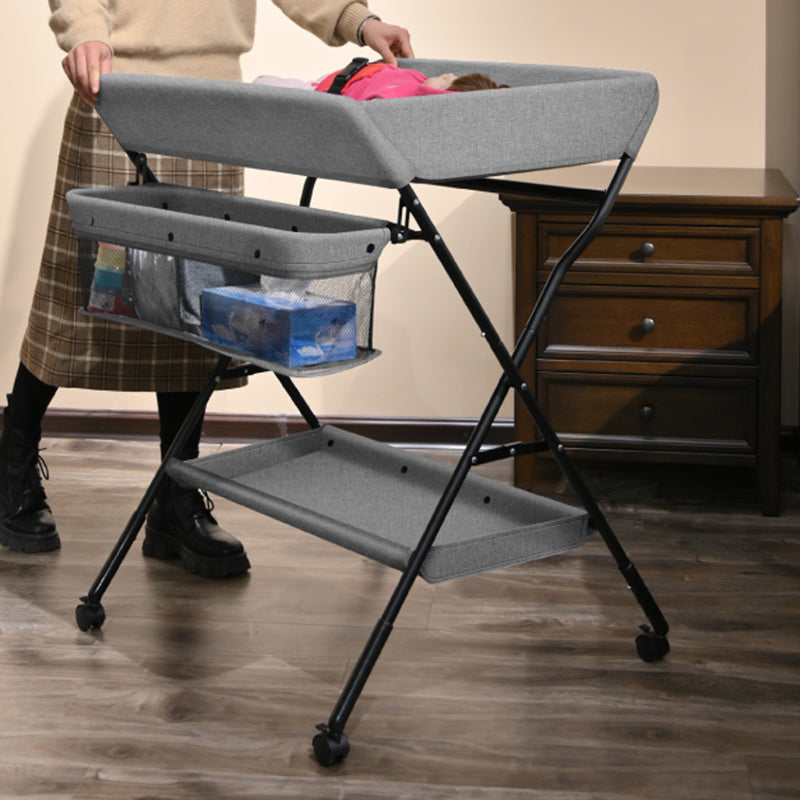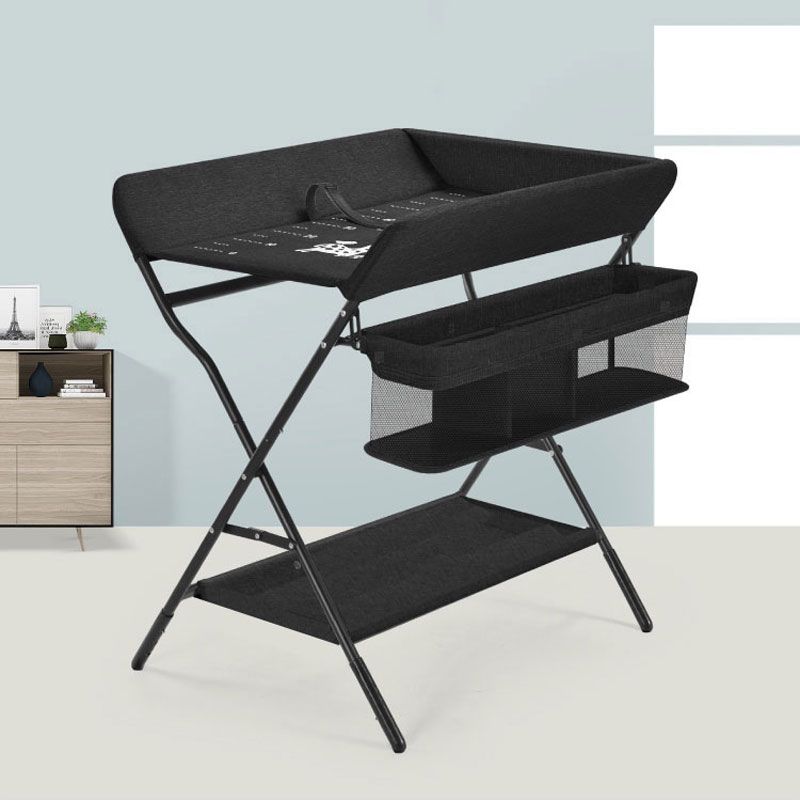 Portable Changing Table Metal Frame with Storage Basket and Safety Belt