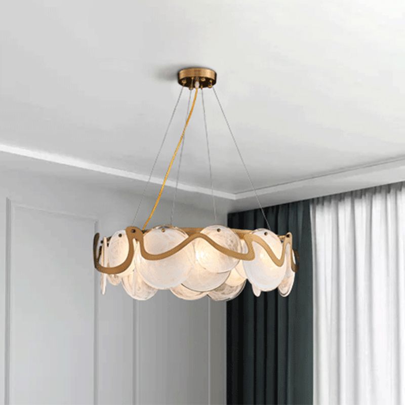 Postmodern Circles Suspended Lighting Fixture Glass Restaurant Island Light in Brass