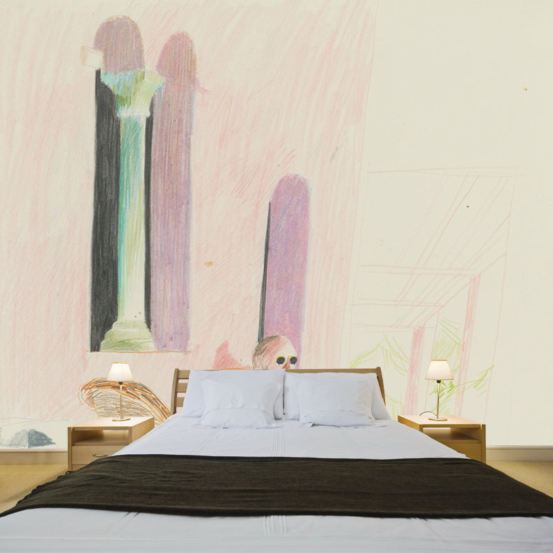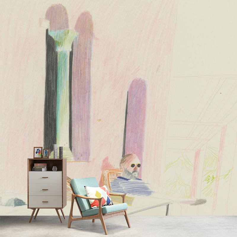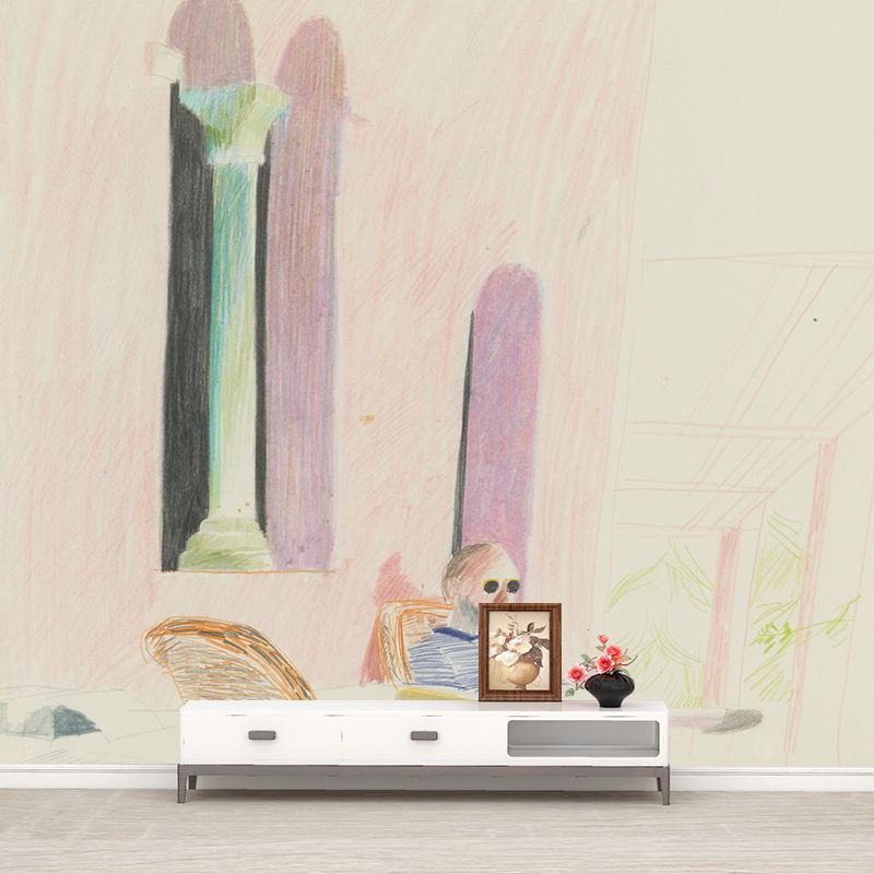 Purple-Pink On Vacation Murals Wallpaper Stain Resistant Wall Art for Living Room