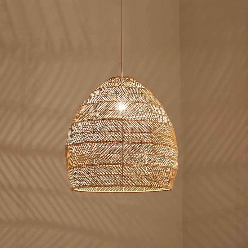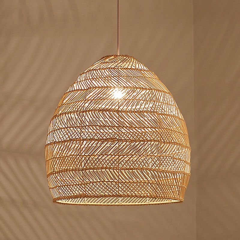 Rattan Cloche Pendant Ceiling Light Asian Single-Bulb Suspension Lighting over Dining Table