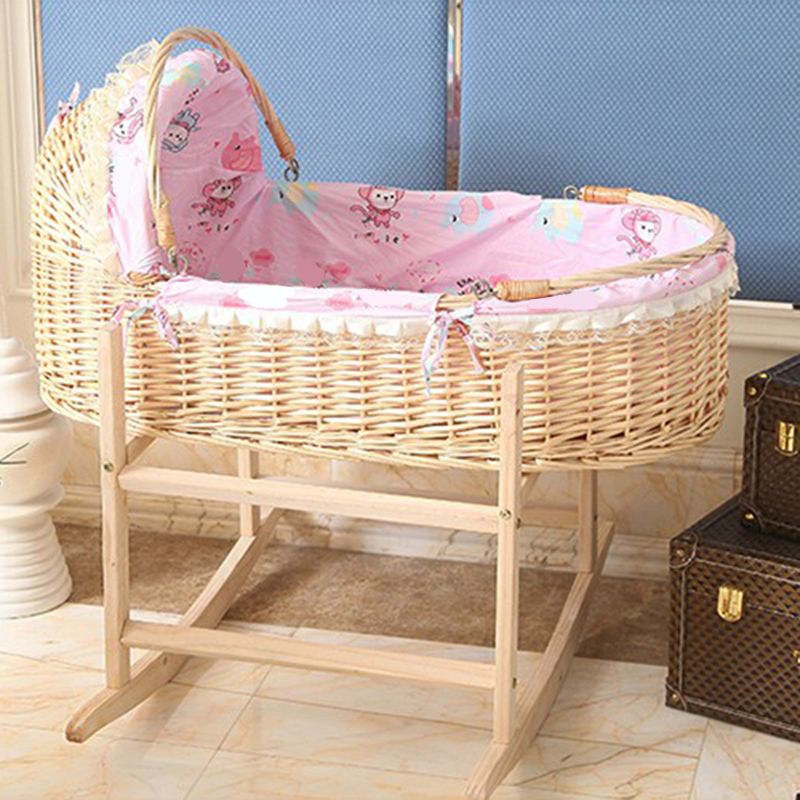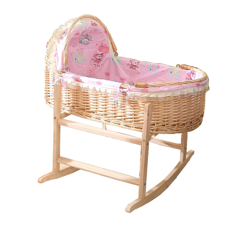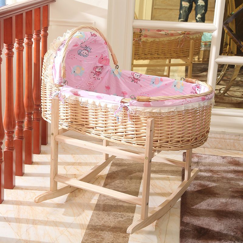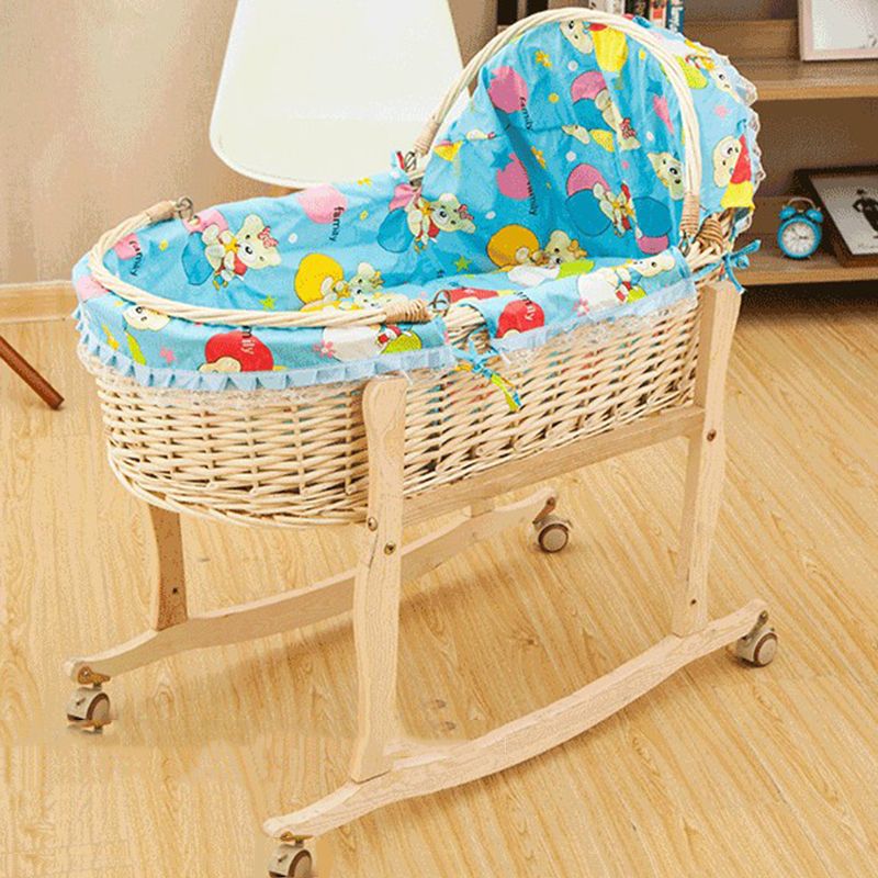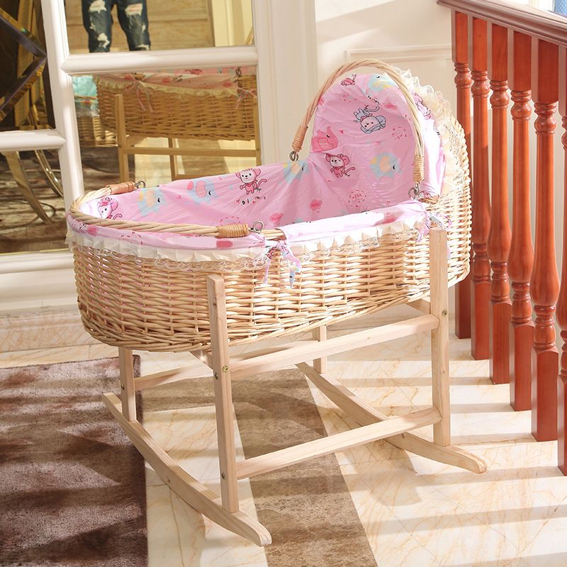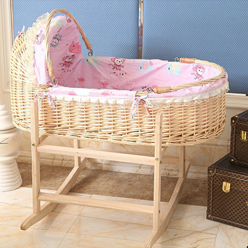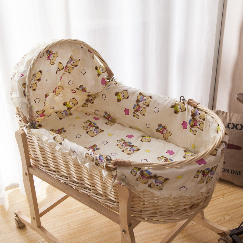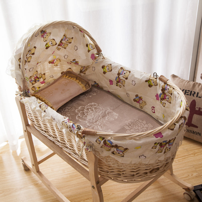 Rattan Modern Nursery Crib Color Matching Nursery Bed with Casters