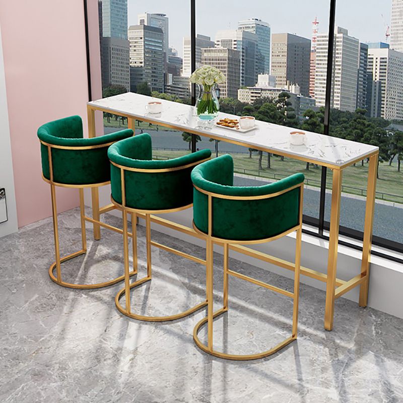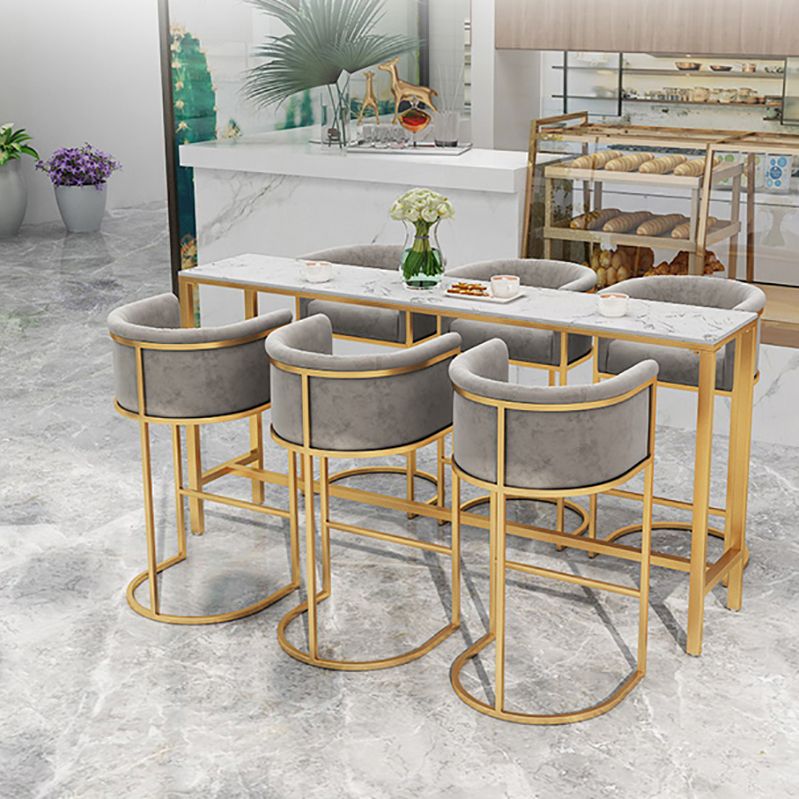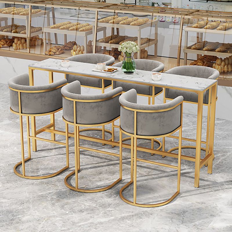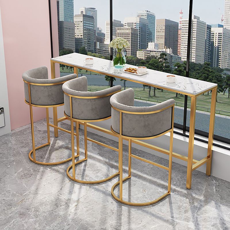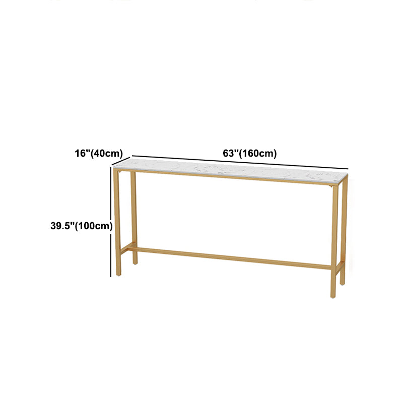 Rectangle Coffee Shop Patio Bar Table Footrest White and Gold Marble Counter Table
