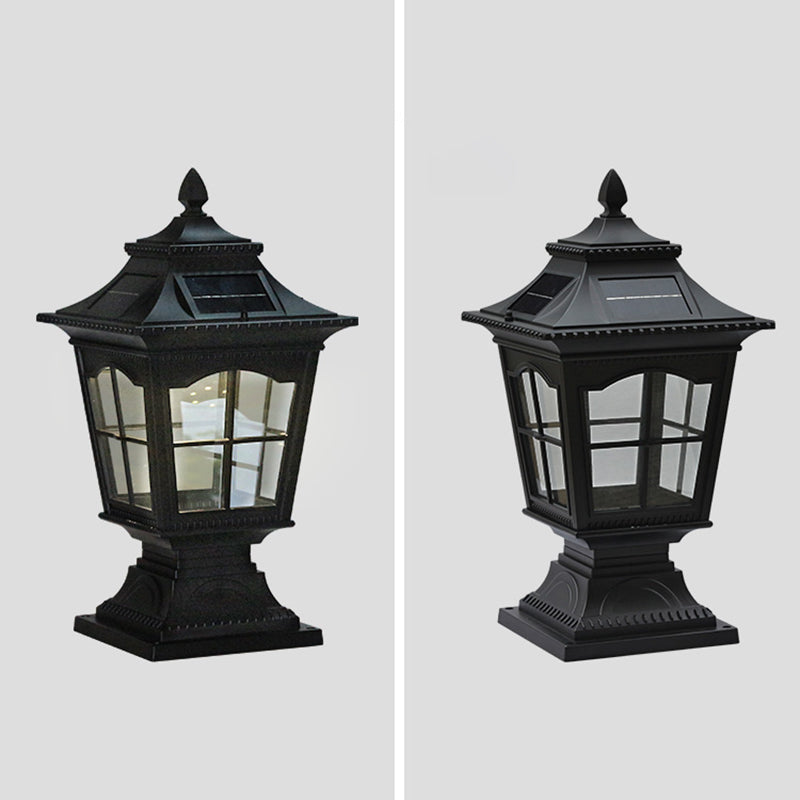 Rectangle Shape Metal Outdoor Light Modern Single Light Solar Pillar Lamp
