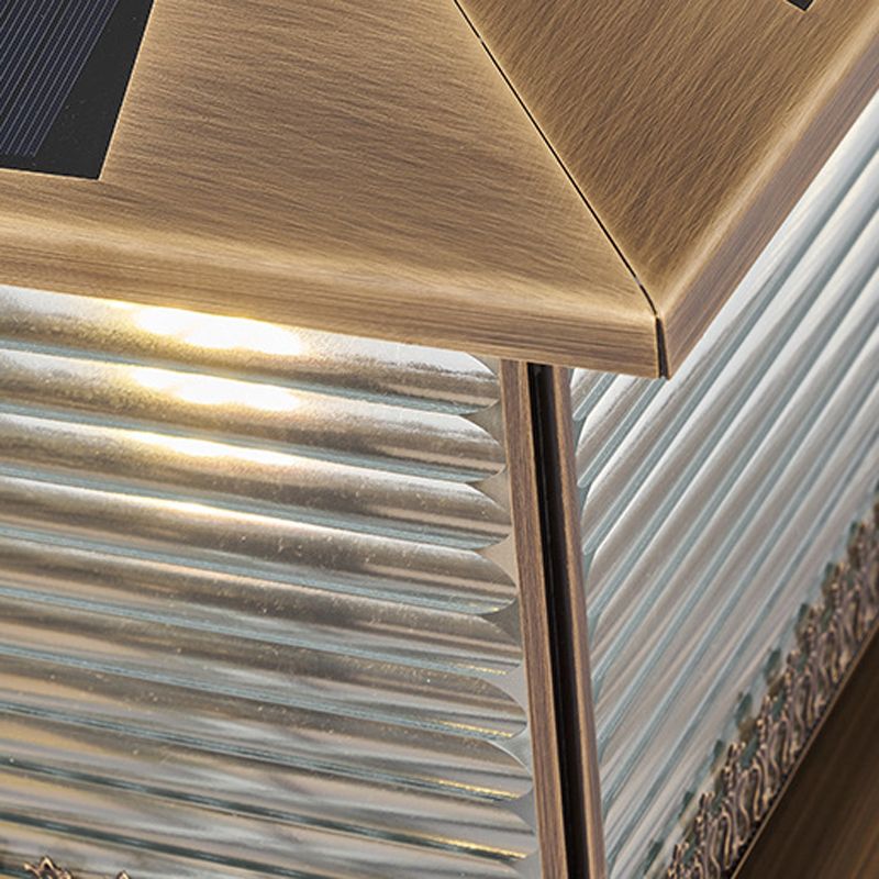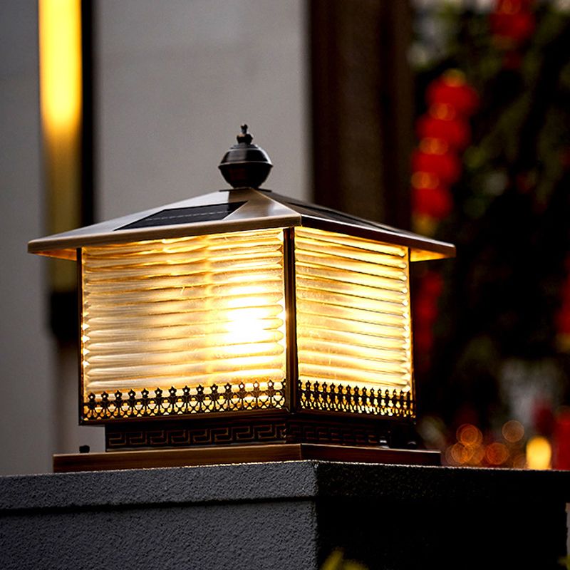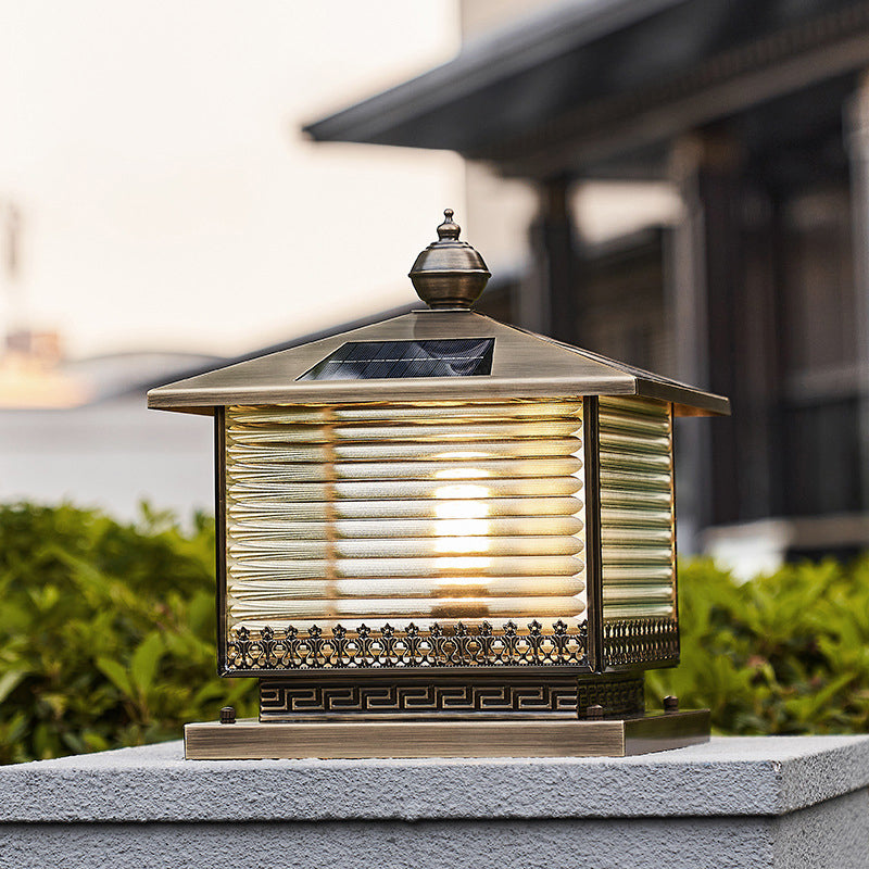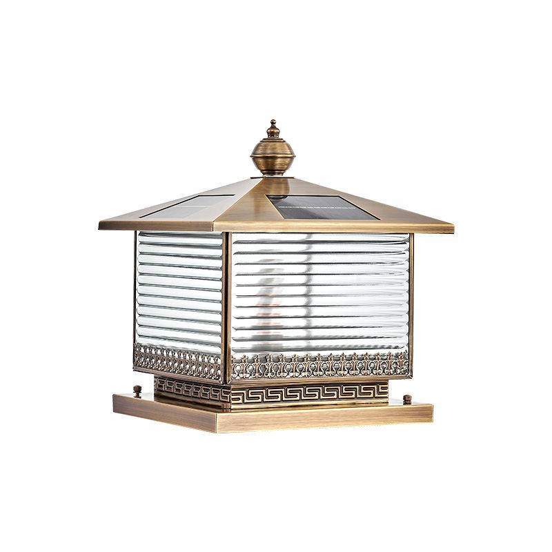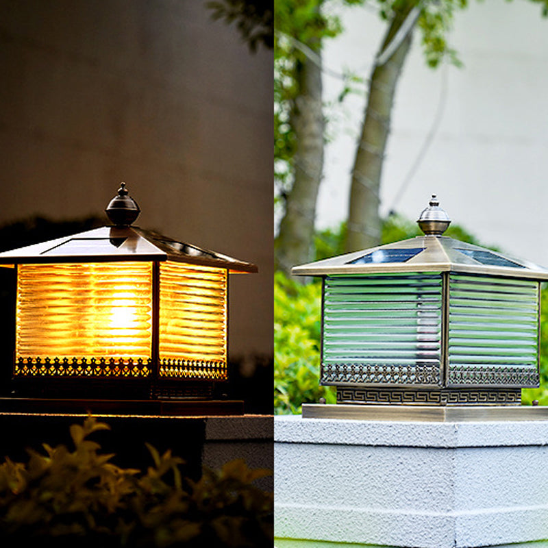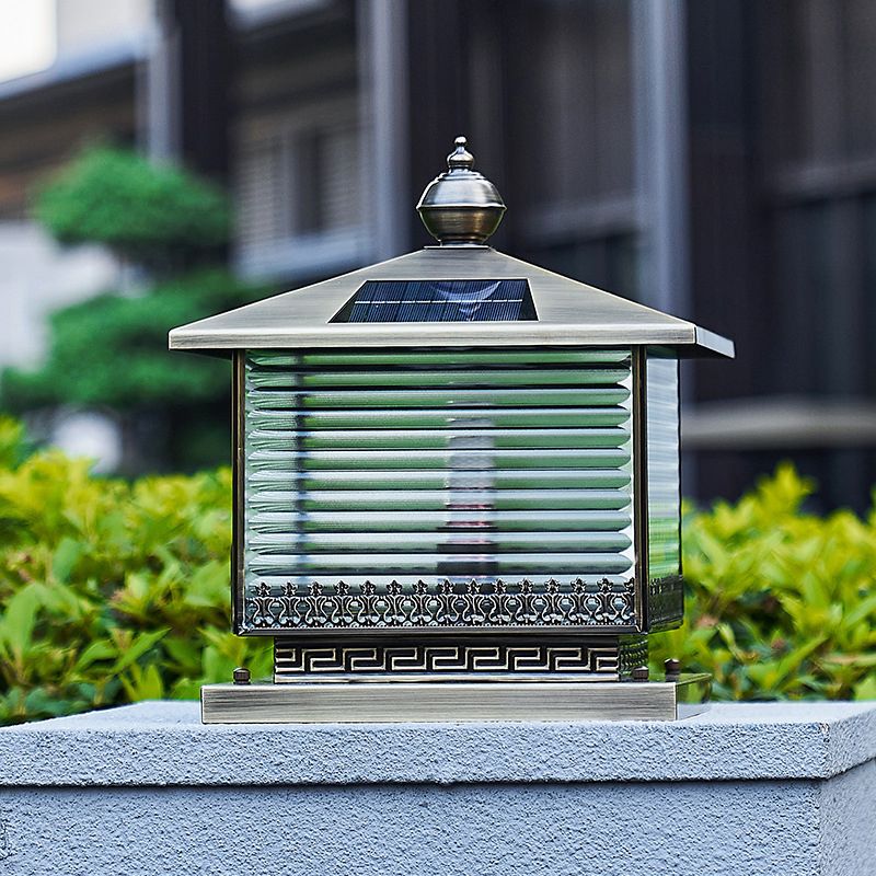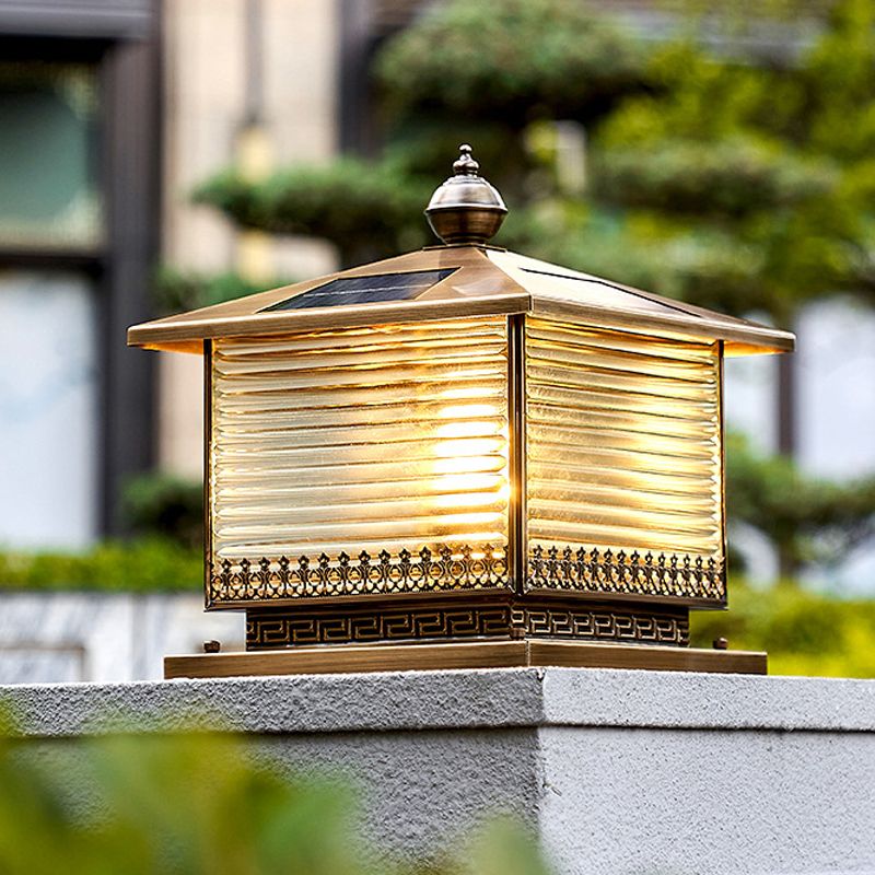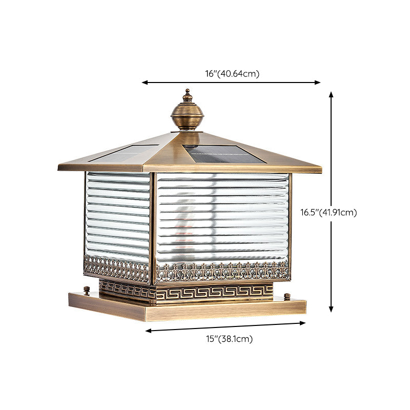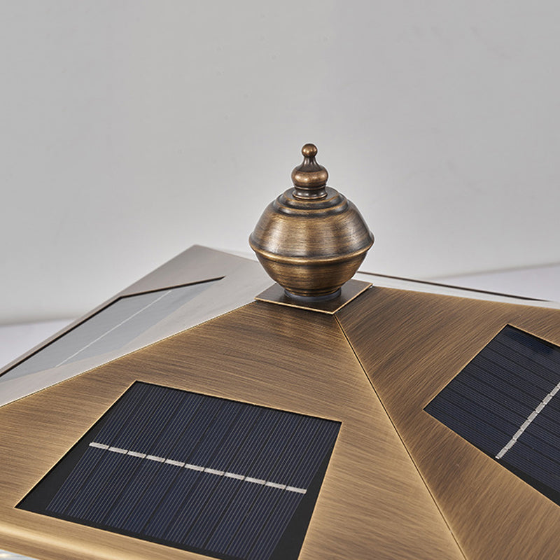 Rectangle Shape Metal Pillar Lamp Modern Style 1 Light Solar Outdoor Light in Brass