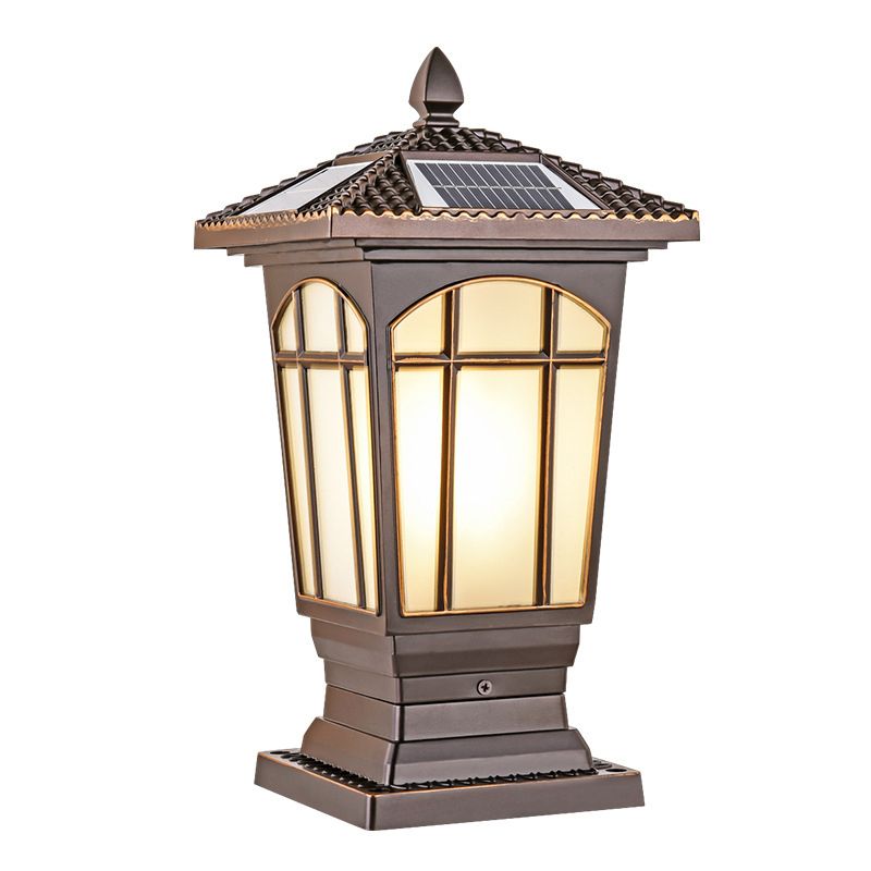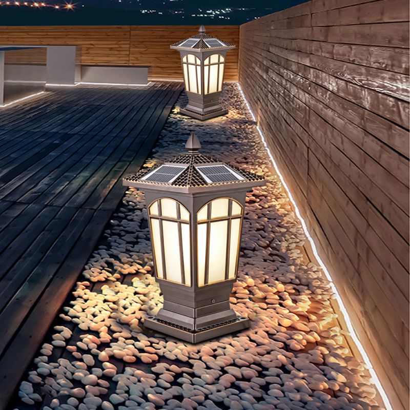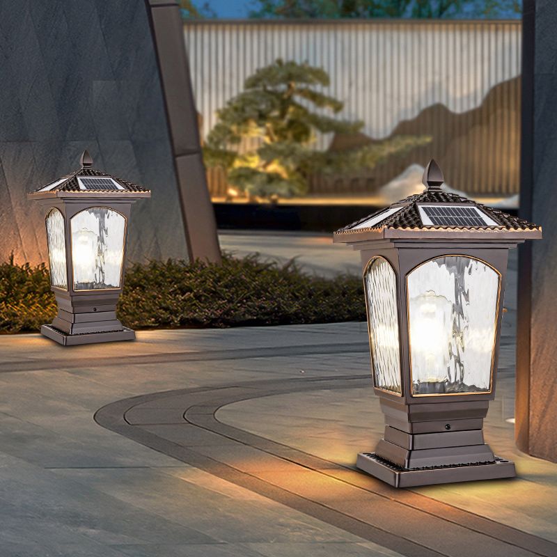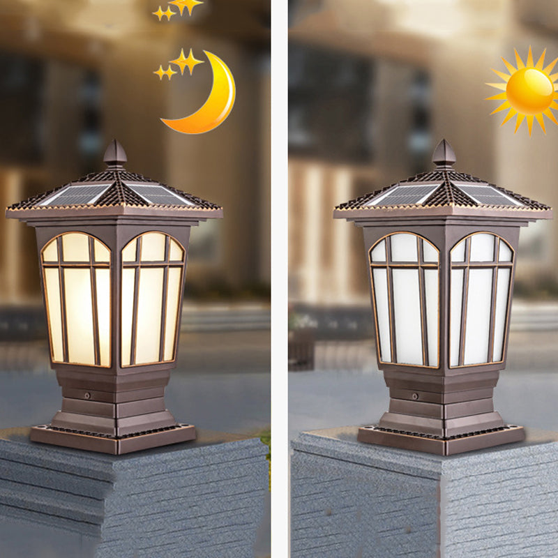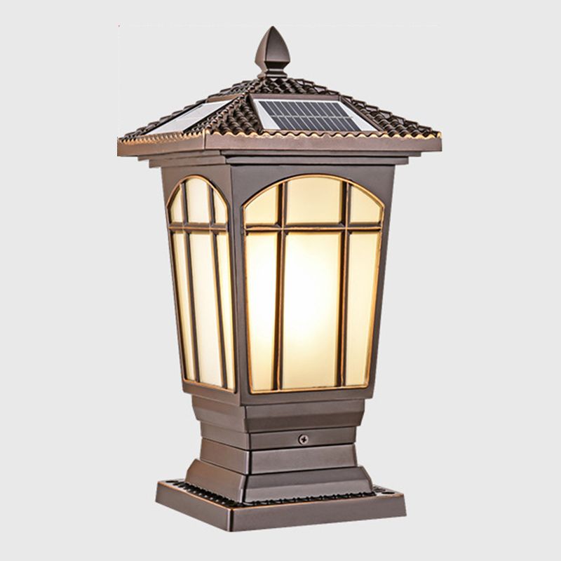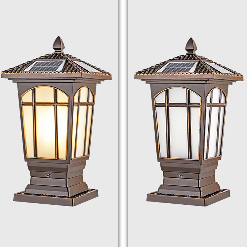 Rectangle Shape Metal Pillar Lamp Modern Style 1 Light Waterproof Outdoor Light in Copper