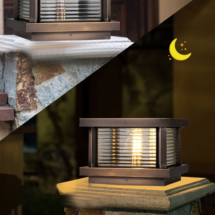 Rectangle Shape Metal Waterproof Pillar Lamp Modern Style 1 Light Outdoor Light