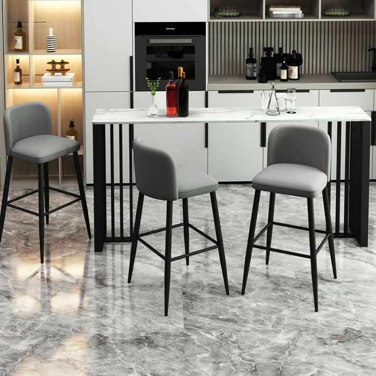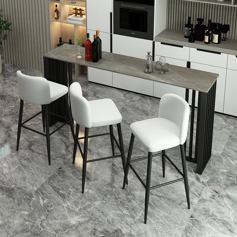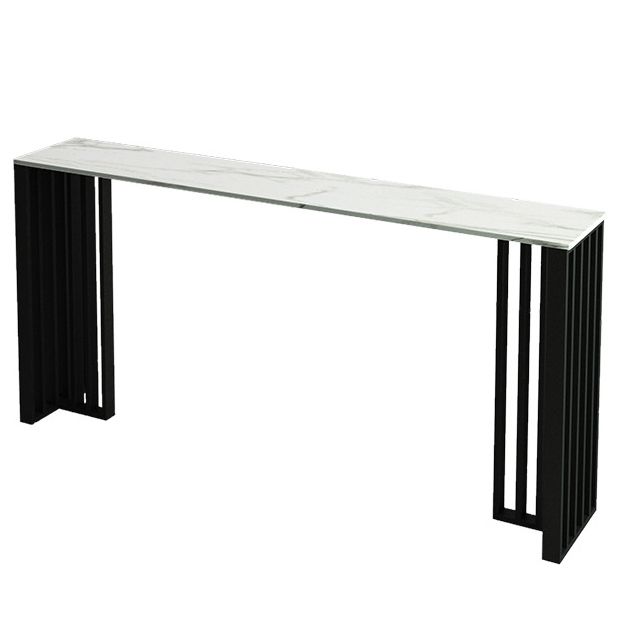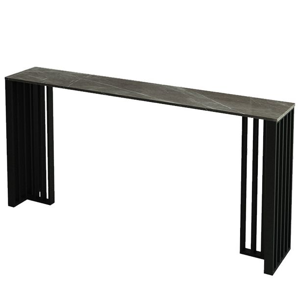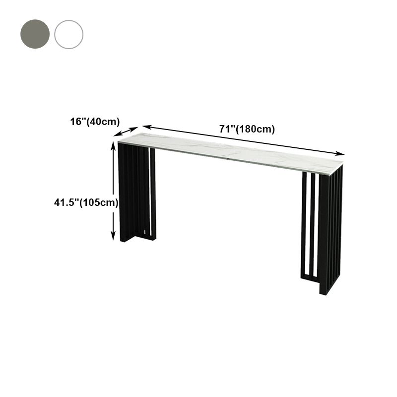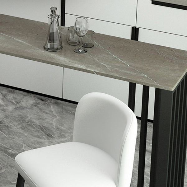 Rectangle Stone Bar Dining Table Contemporary Bar Table with Double Pedestal Base