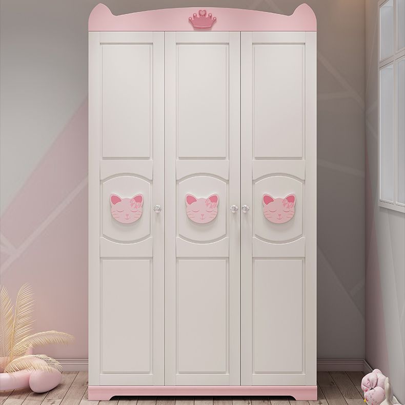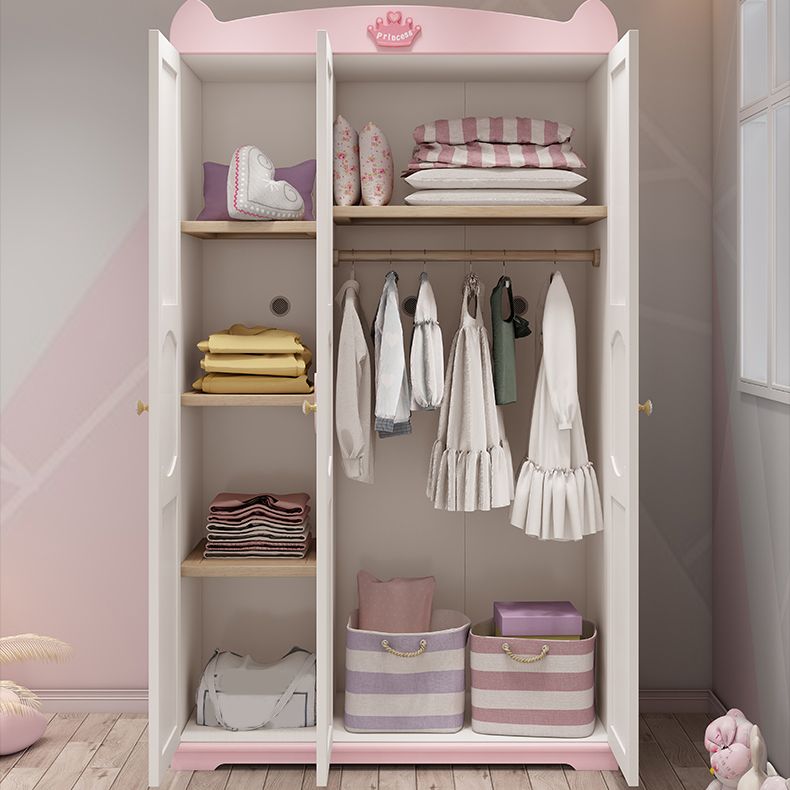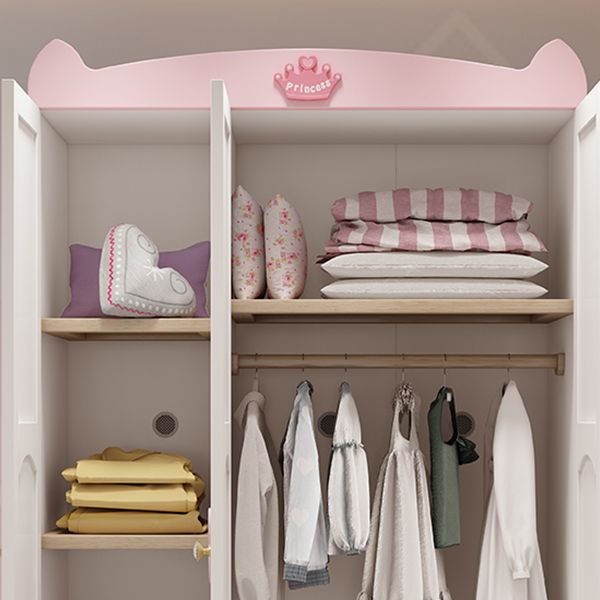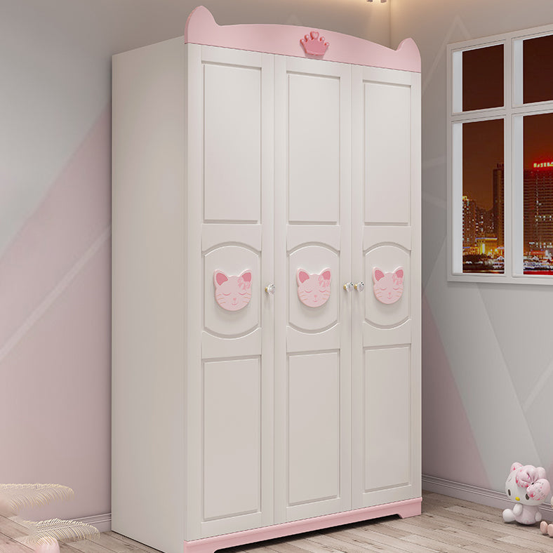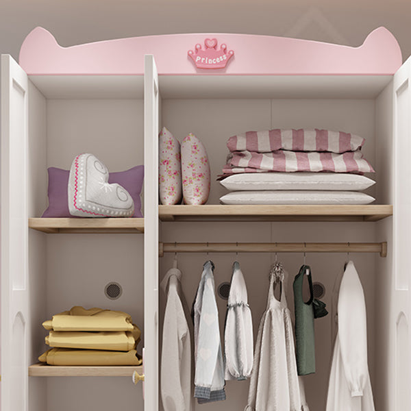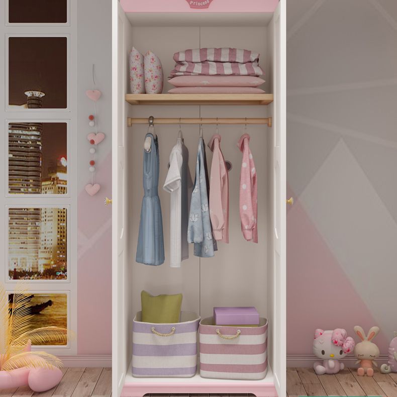 Rectangle Wooden Kid's Armoire White Wood Armoire Cabinet with Garment Rod