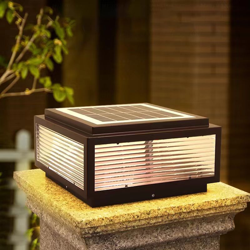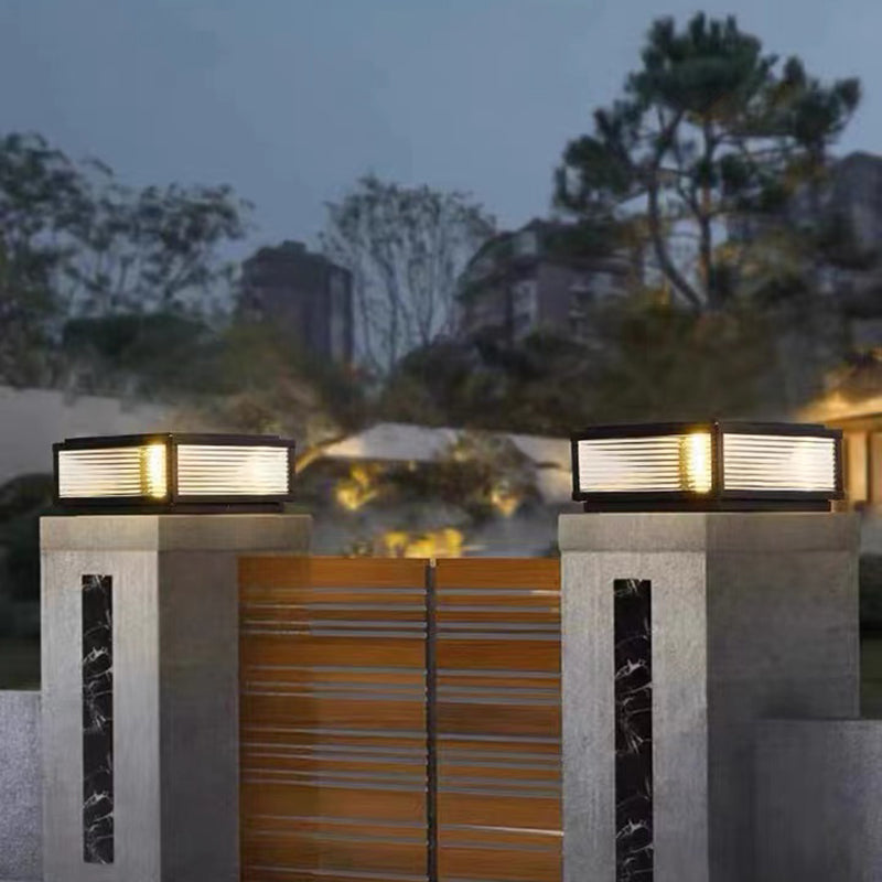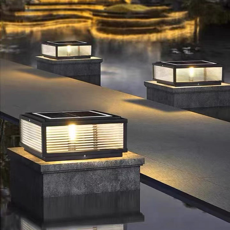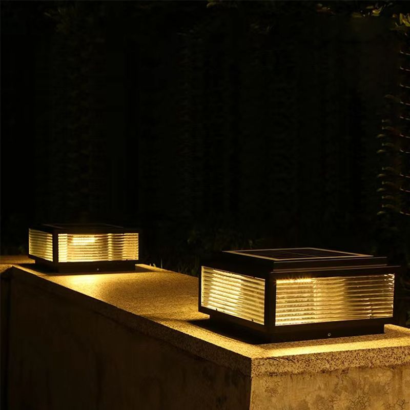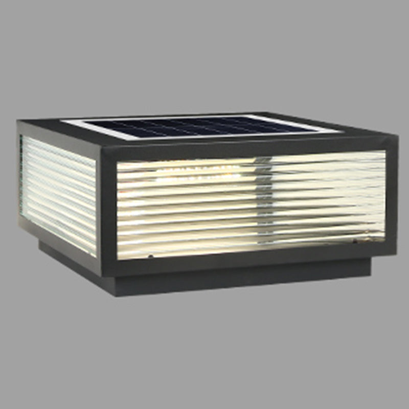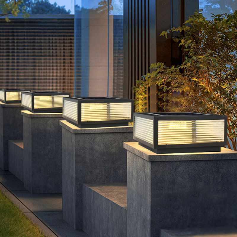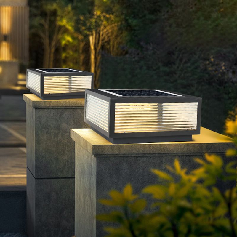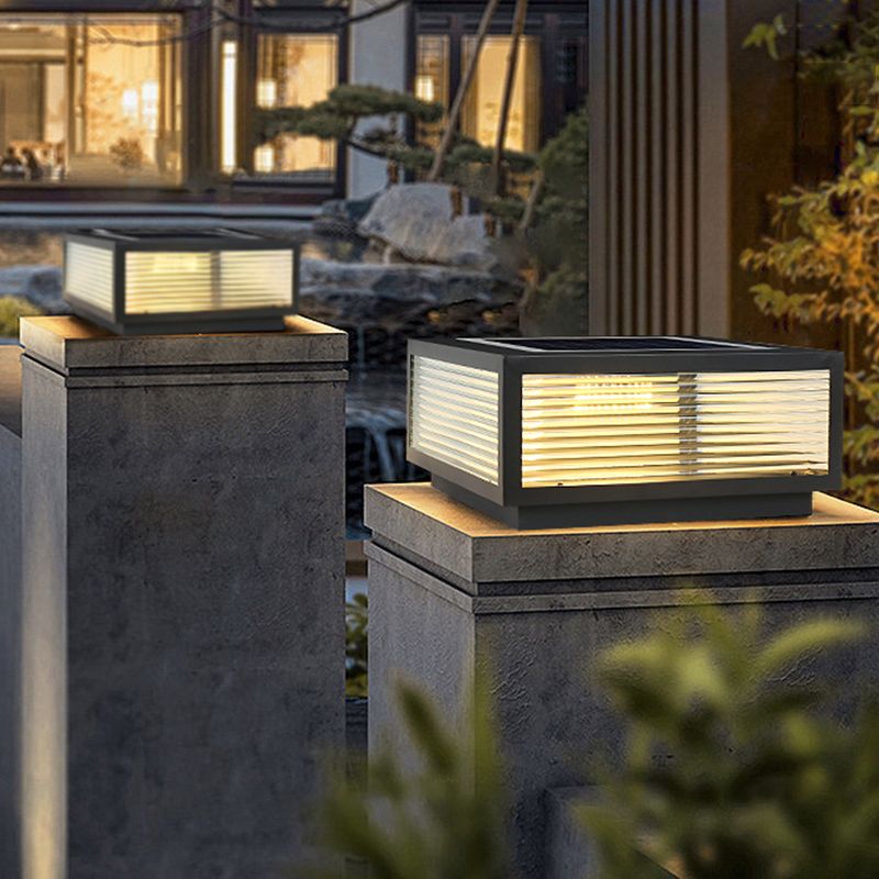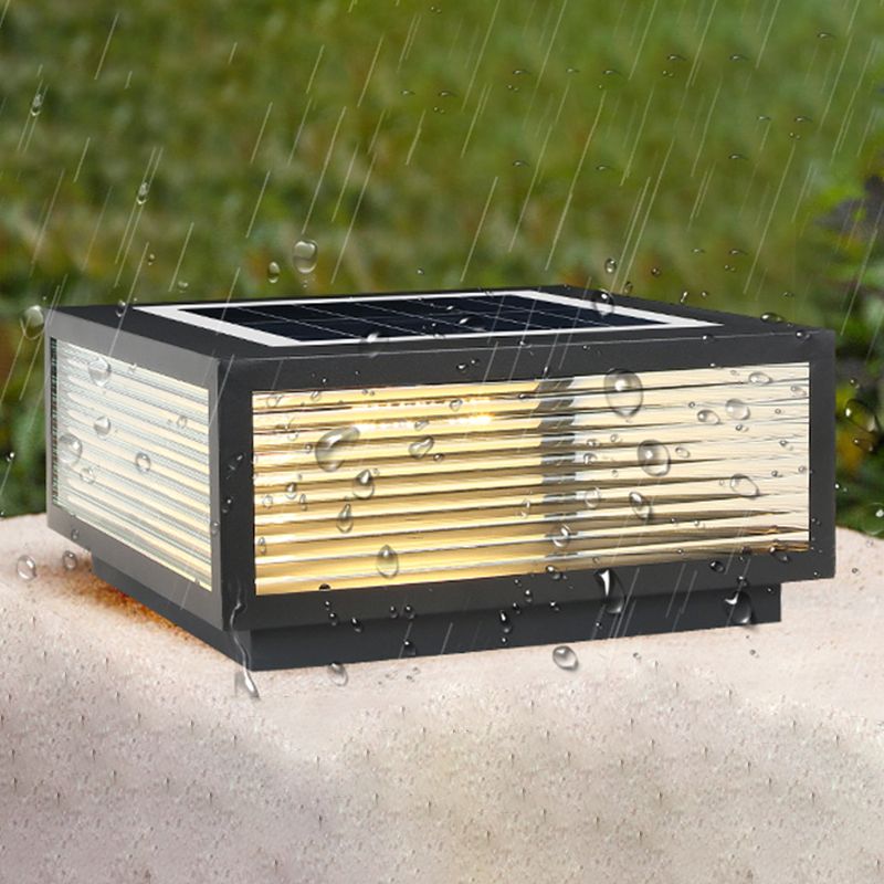 Rectangular Shape Metal Outdoor Lights Modern 1 Light Solar Pillar Lamp in Black
