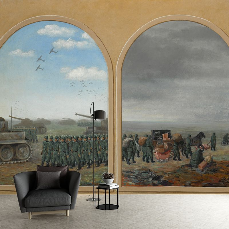 Rene La Dialectique Appliquee Murals Yellow-Brown Surrealistic Wall Covering for Home