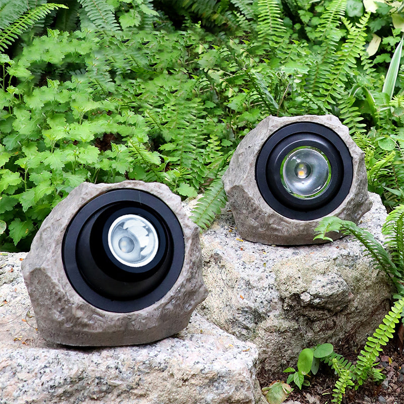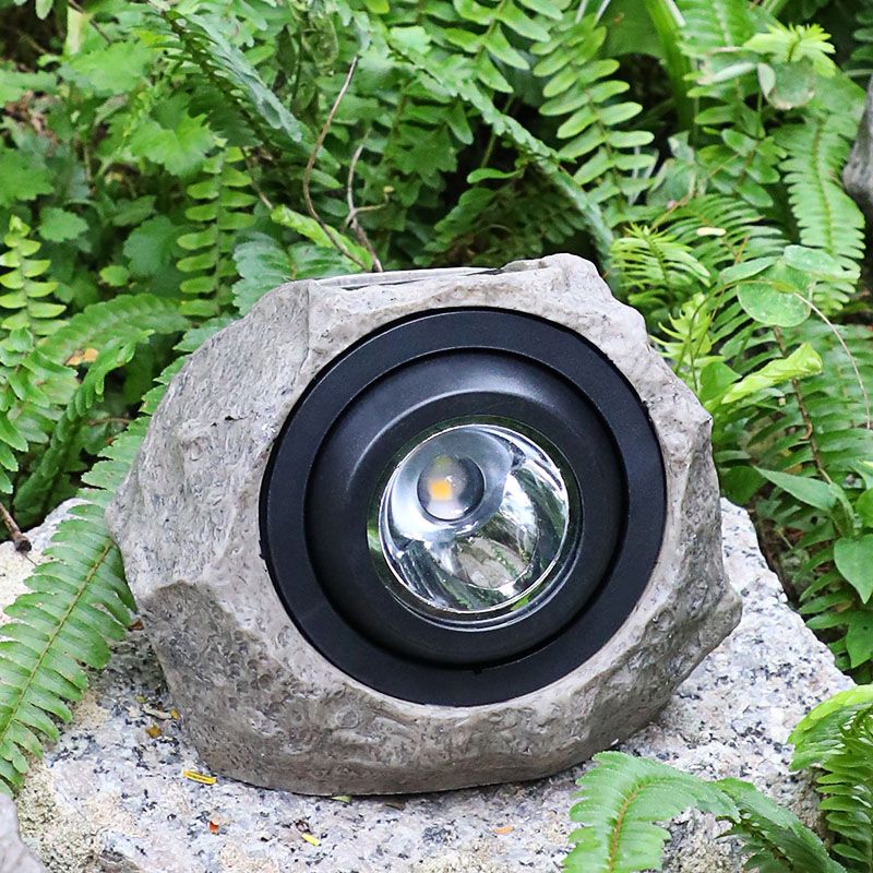 Resin Stone LED Lawn Spotlight Artistic Grey Solar Ground Light for Pathway, 1 Piece