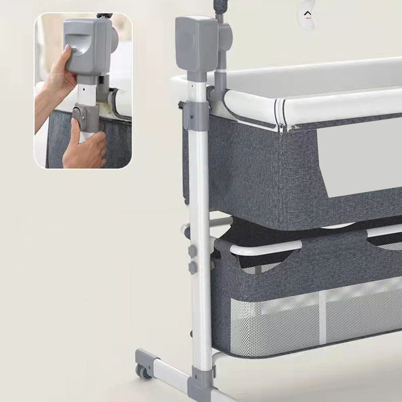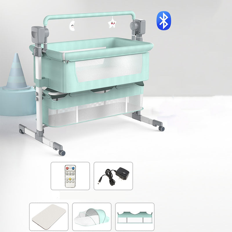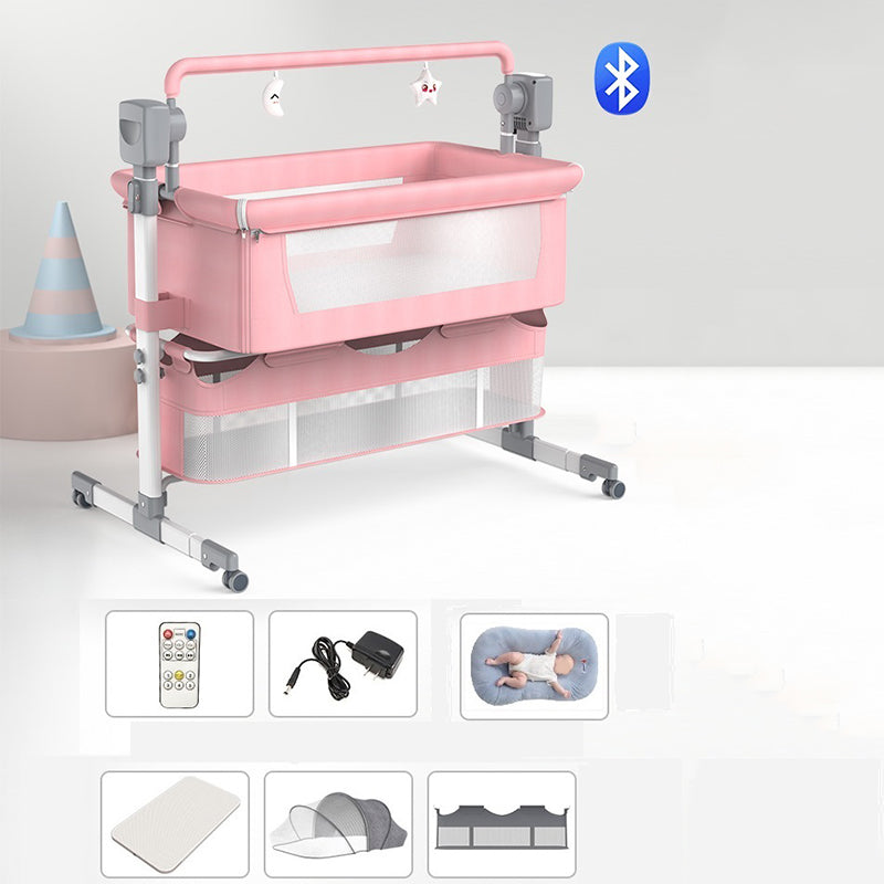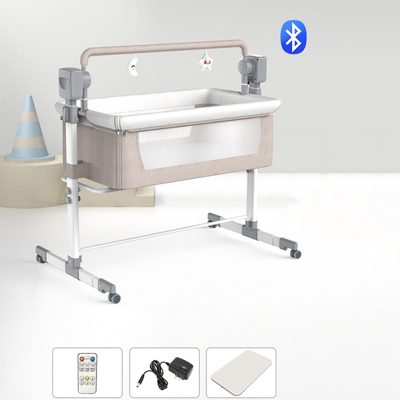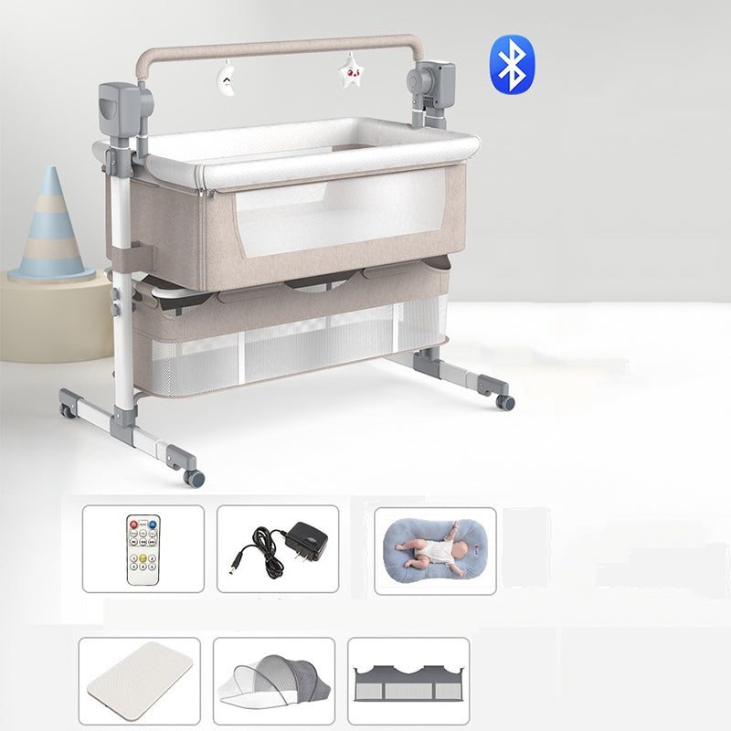 Rocking Bedside Bassinet Round Side Crib Electric with Storage Basket
