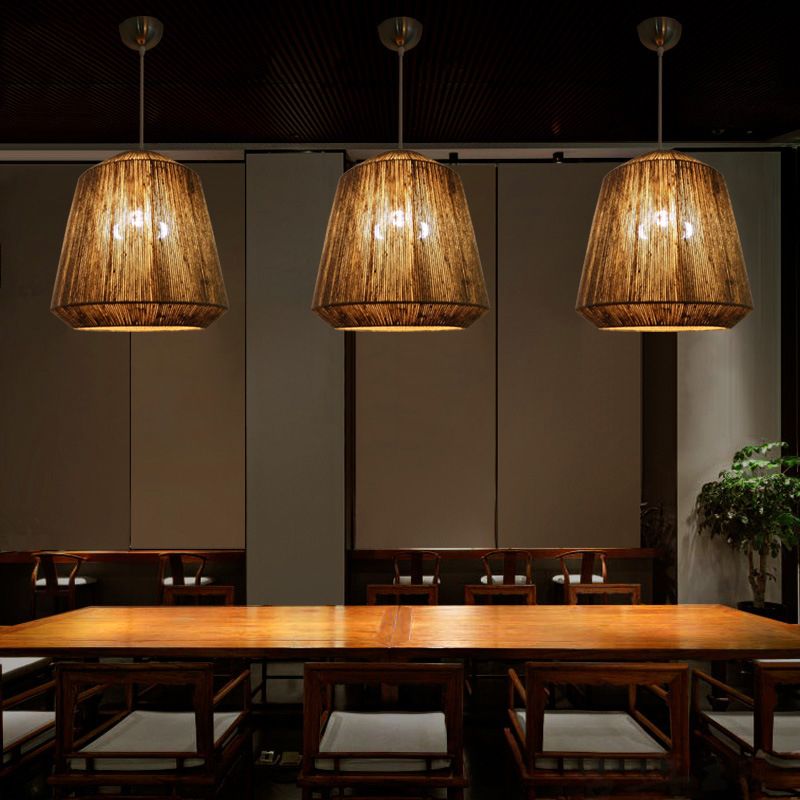 Rope Conical Hanging Chandelier Farmhouse 3-Bulb Ceiling Pendant Light in Flaxen for Tearoom