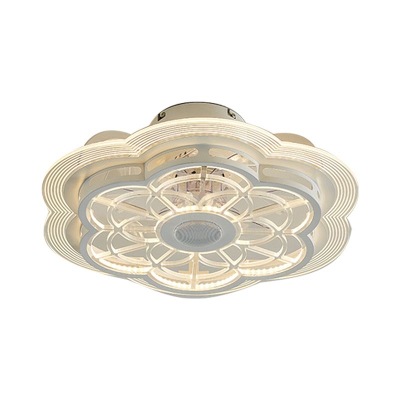 Round Bluetooth Speaker Fan Light Minimalistic Acrylic Bedroom Semi Flush Mounted Lamp