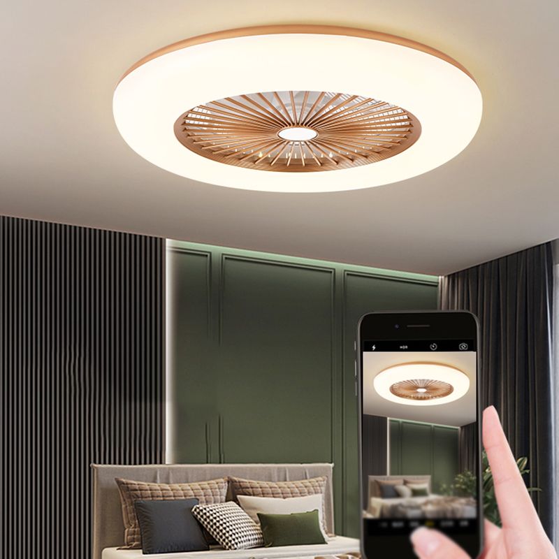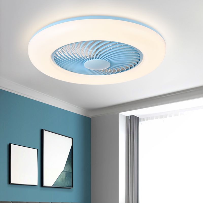 Round Ceiling Fan Light Modern Style Metal Single Light LED Flush Light