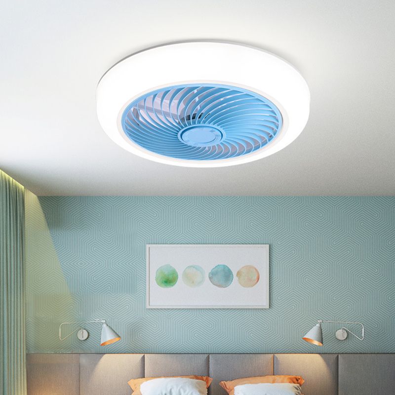Round Fan Flush Mount Light Modern Acrylic Bedroom LED Wind Machine Semi Flush Light