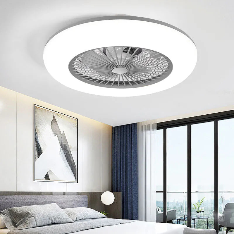 Round LED Ceiling Fan Light Simplicity Metal Flush Mount Light for Bedroom