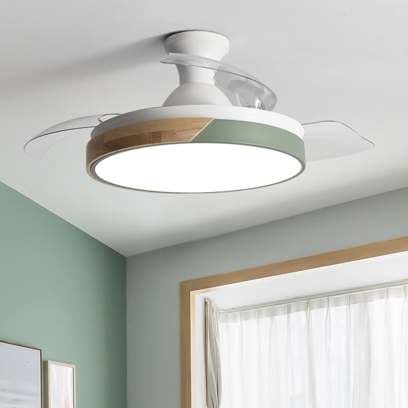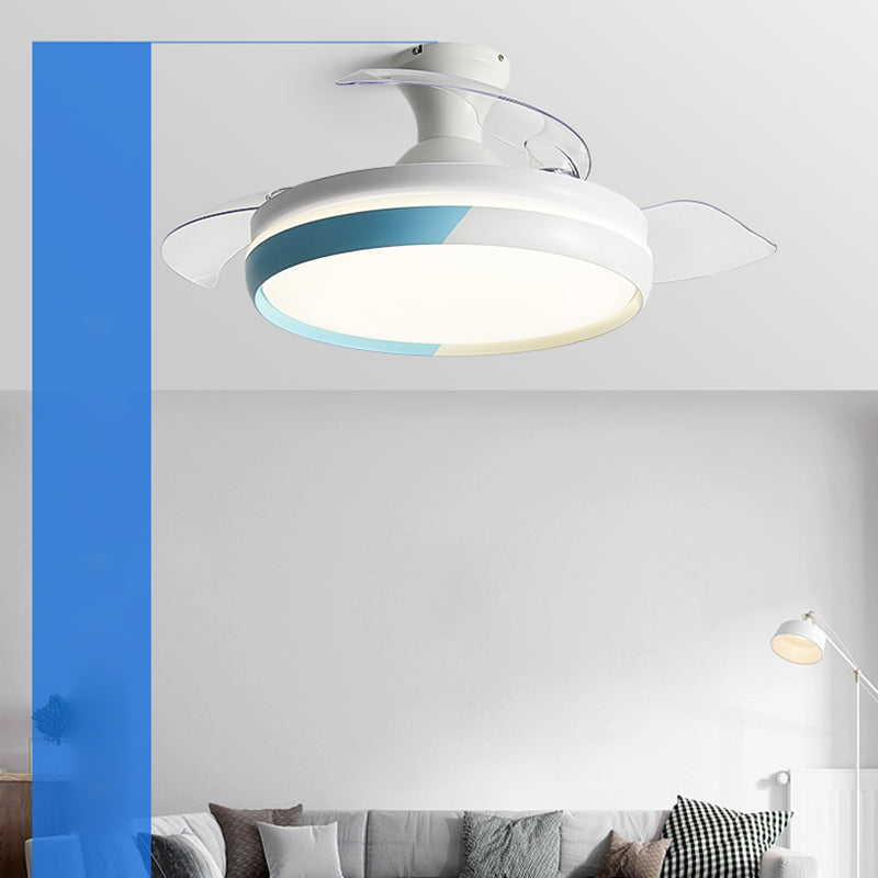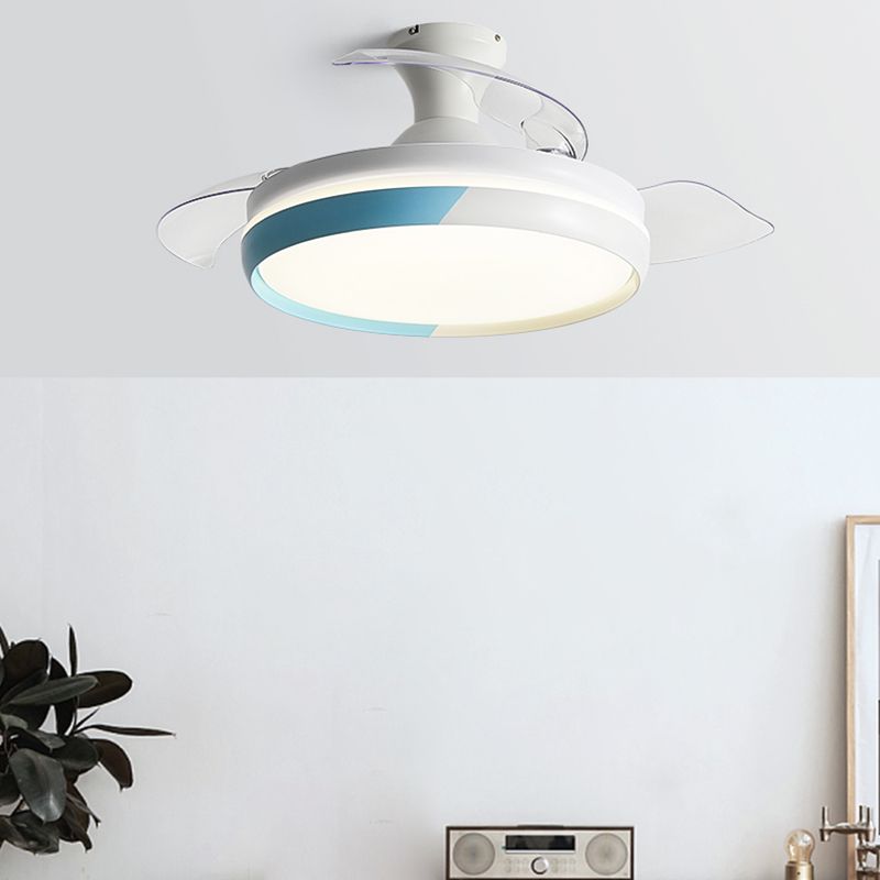 Round Metal Ceiling Fan Light Kids Style 1-Light Ceiling Fan Lamp for Living Room