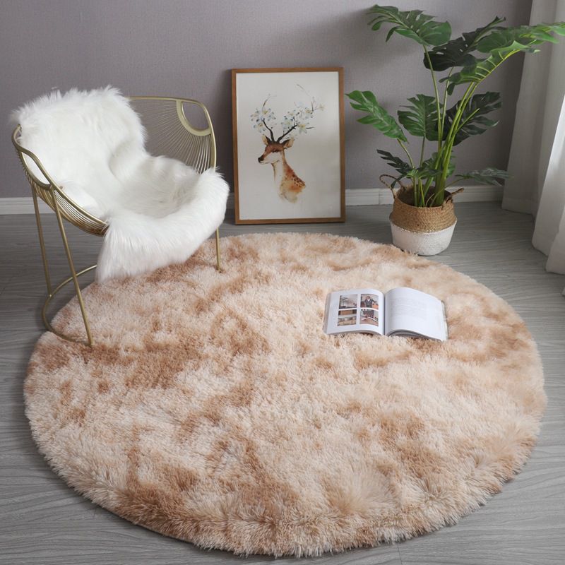 Round Plain Area Rug Polyester Carpet Indoor Rug for Sleeping Room Decoration