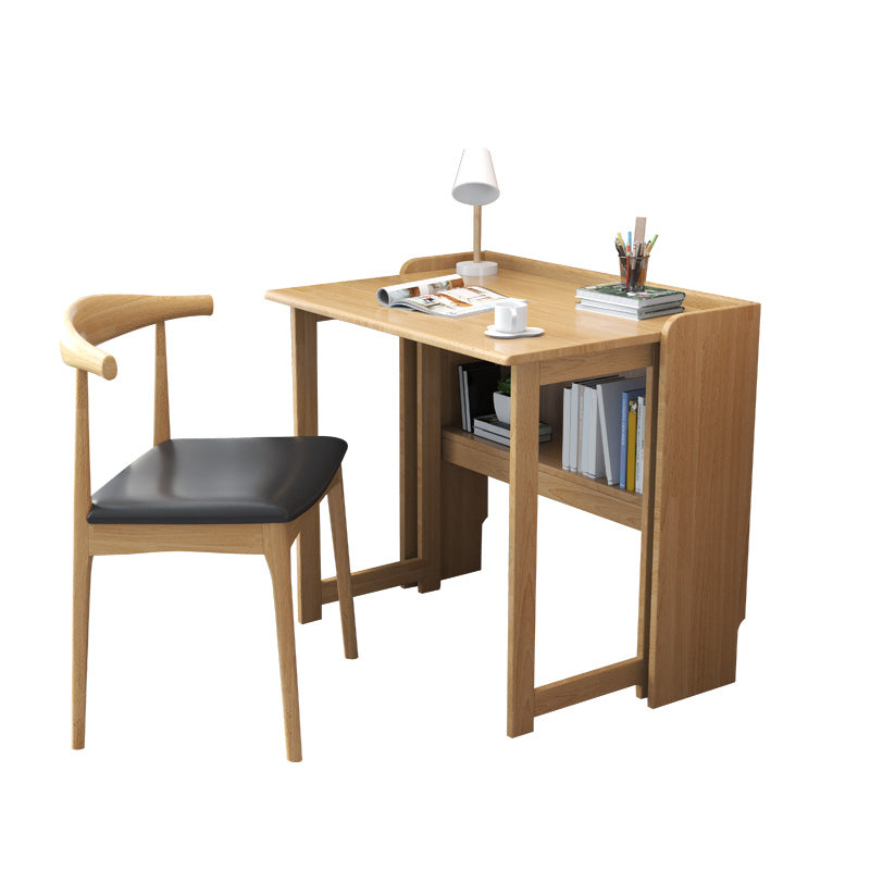 Rubber Wood Writing Desk with 1 Shelf in White/Natural Child Desk