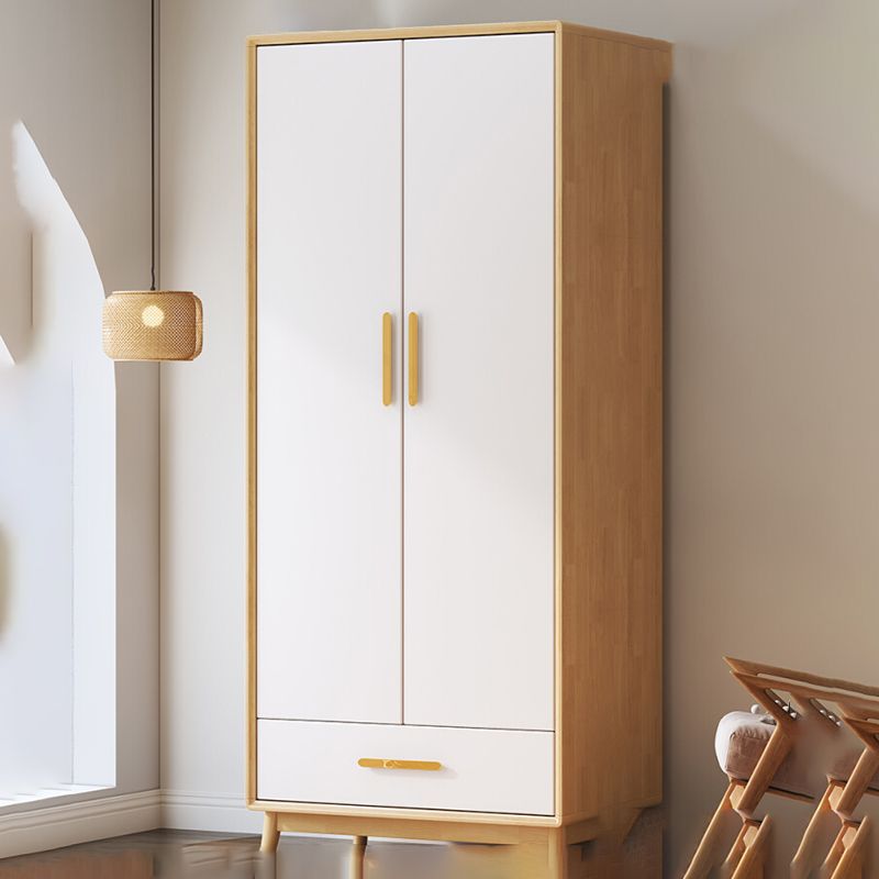 Rubberwood Solid Wood Armoire Cabinet Bedroom Youth Armoire with Garment Rod