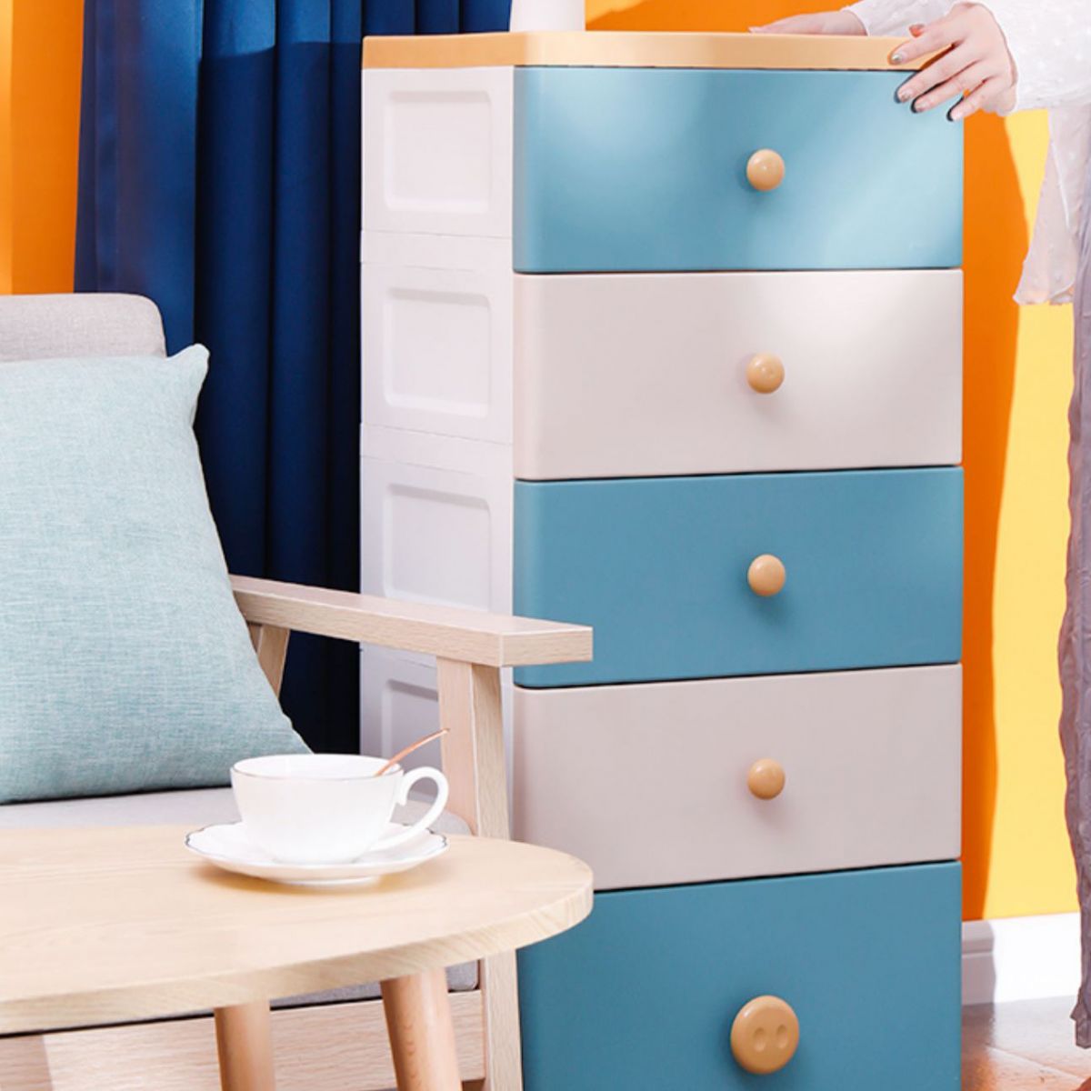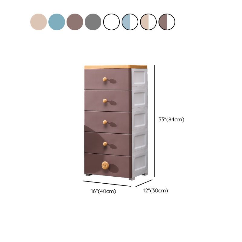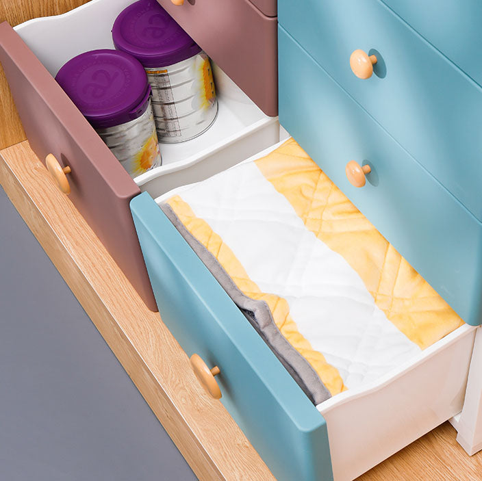 Scandinavian Kids Nightstand Plastic Nursery Dresser with 5 Drawers , 11.7 Inch W