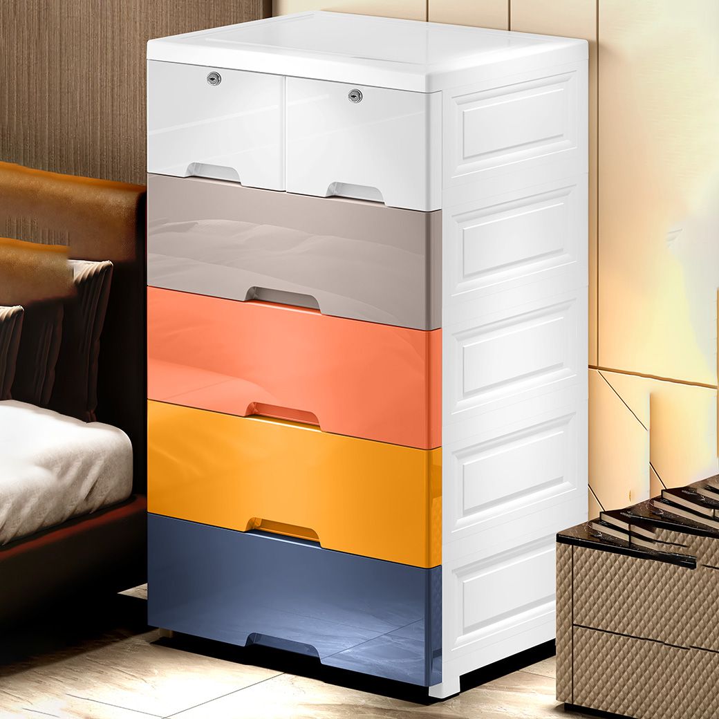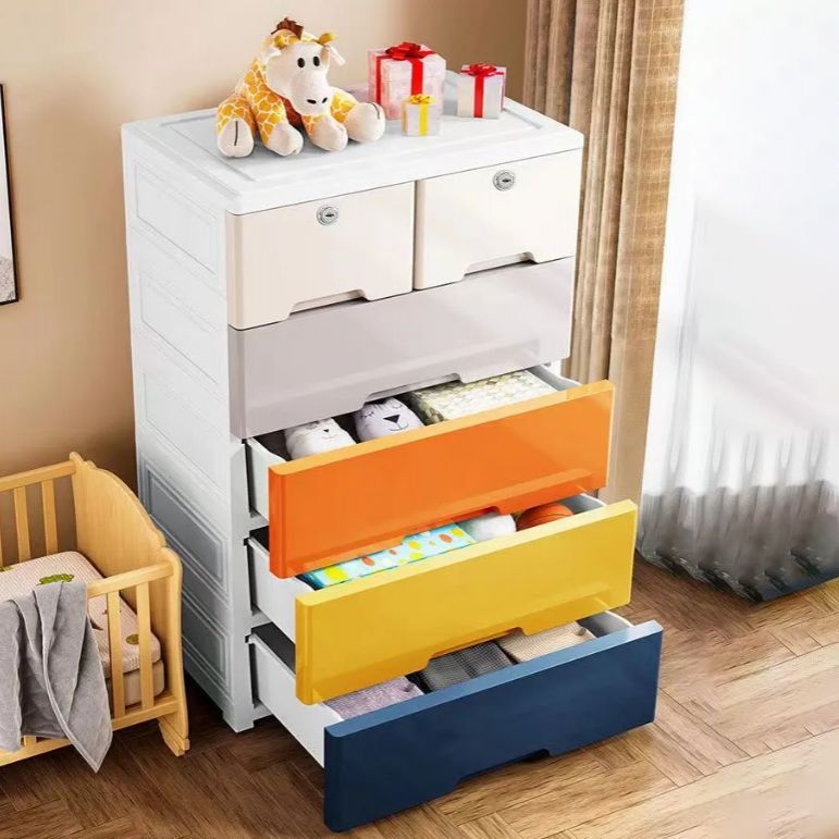 Scandinavian Plastic Vertical Kids Dresser Set with Drawers for Bedroom