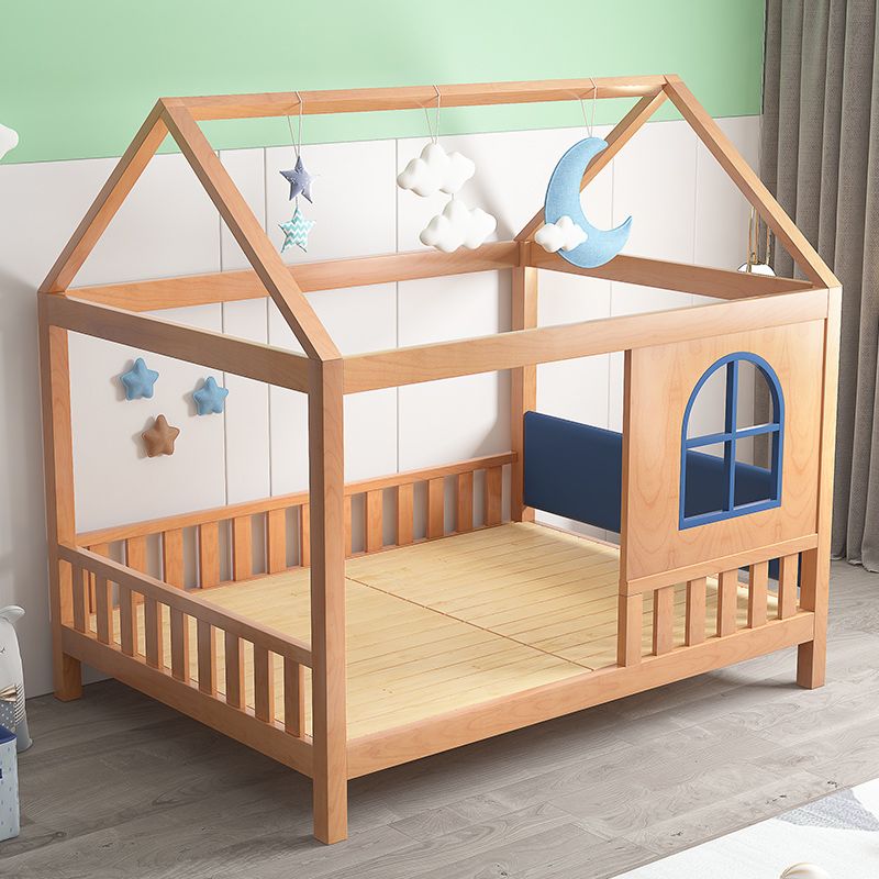 Scandinavian Solid Wood Panel Bed Dollhouse Upholstered Bed in Natural
