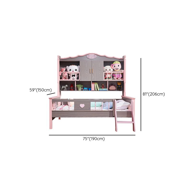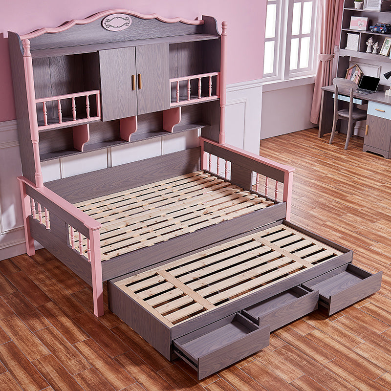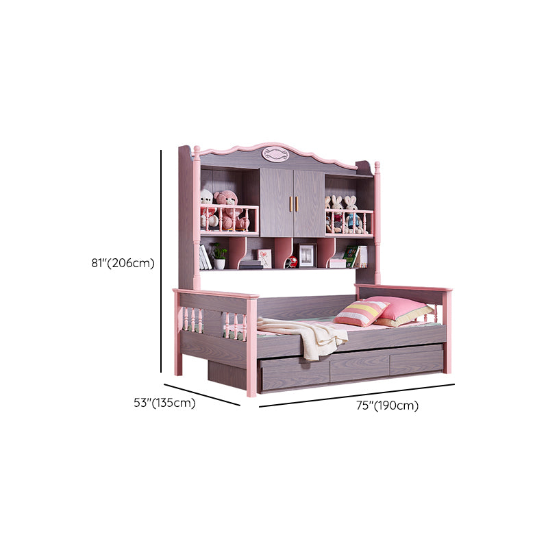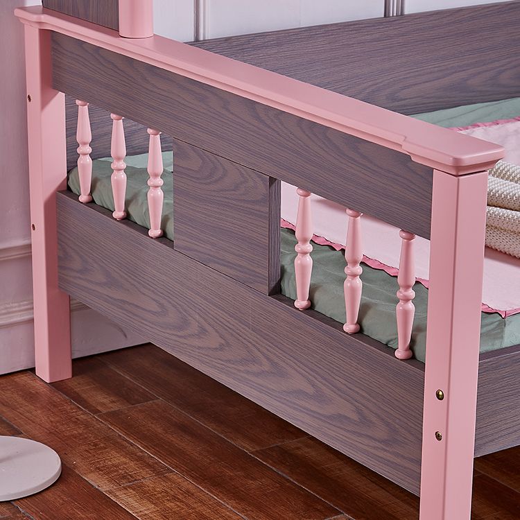 Scandinavian Standard Bed Solid Wood Pink and Brown Panel Bed with Headboard