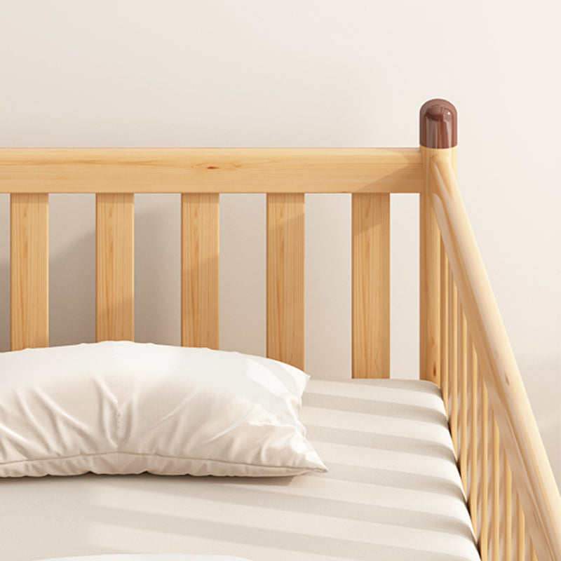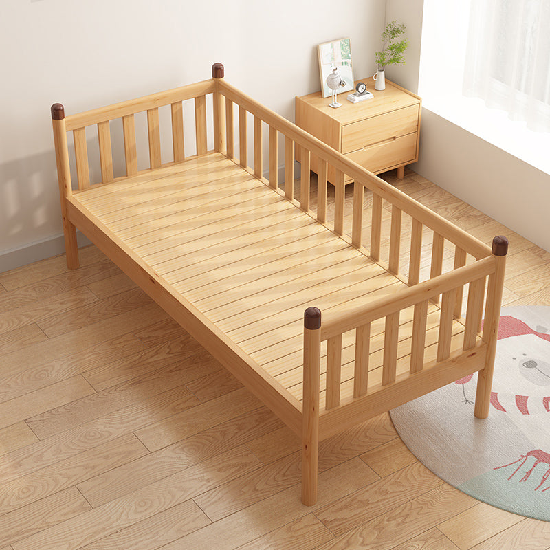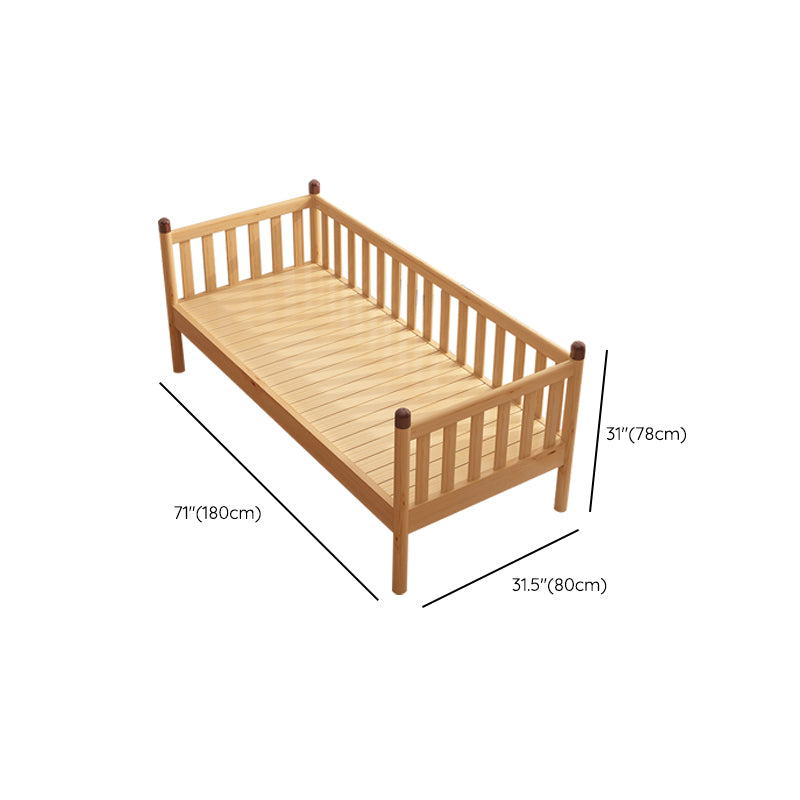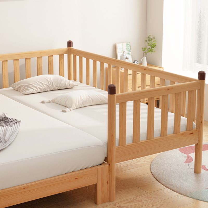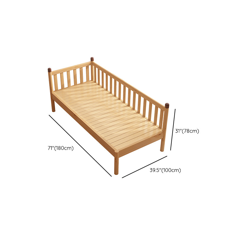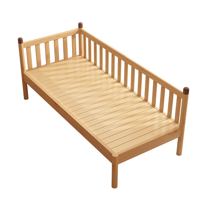 Scandinavian Standard Bed with Guardrail Solid Wood Panel Bed, Natural