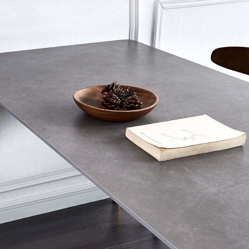 Scandinavian Style 6 Seat Rectangular Black Legs Black Slate Dining Table with Base