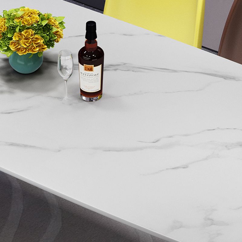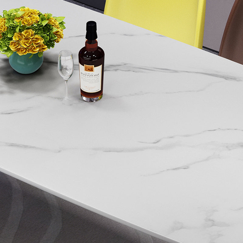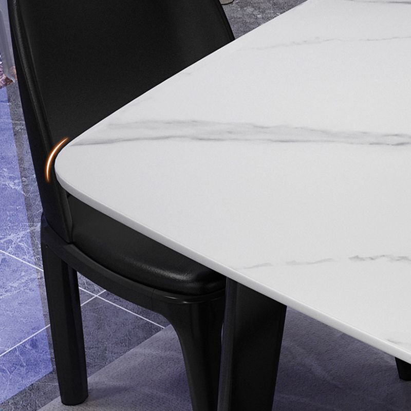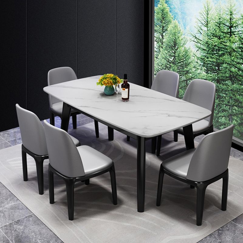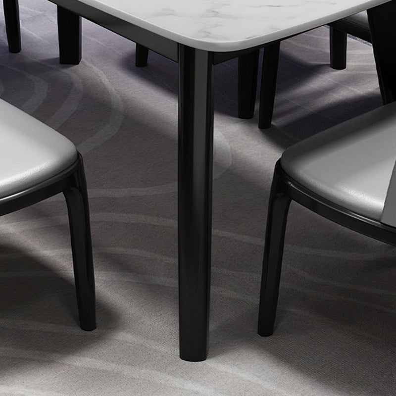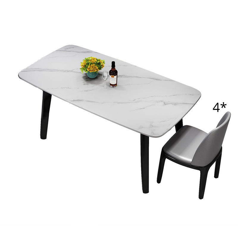 Scandinavian Style Rectangular Black Legs White Slate Dining Table Set with Base
