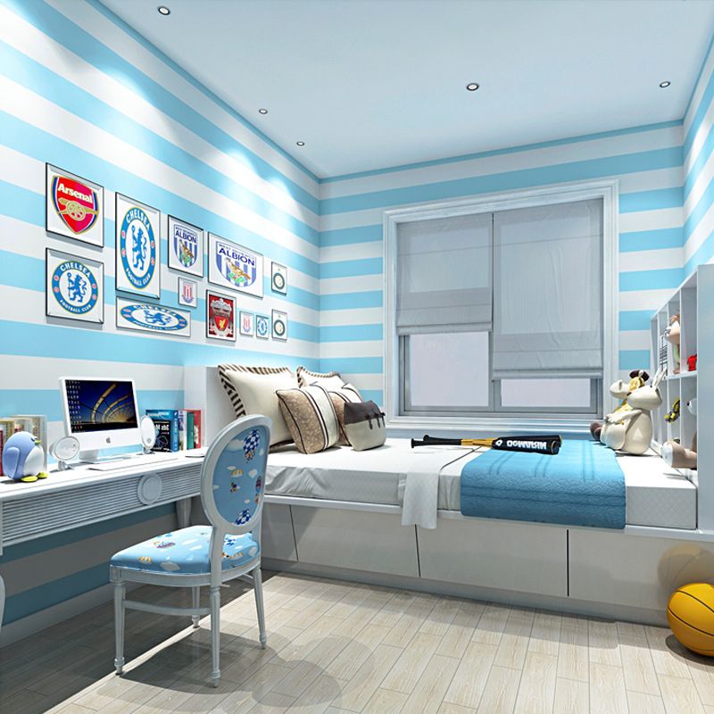 Scandinavian Vertical Stripe Wallpaper for Children Non-Woven 20.5-inch x 33-foot Light Color Non-Pasted