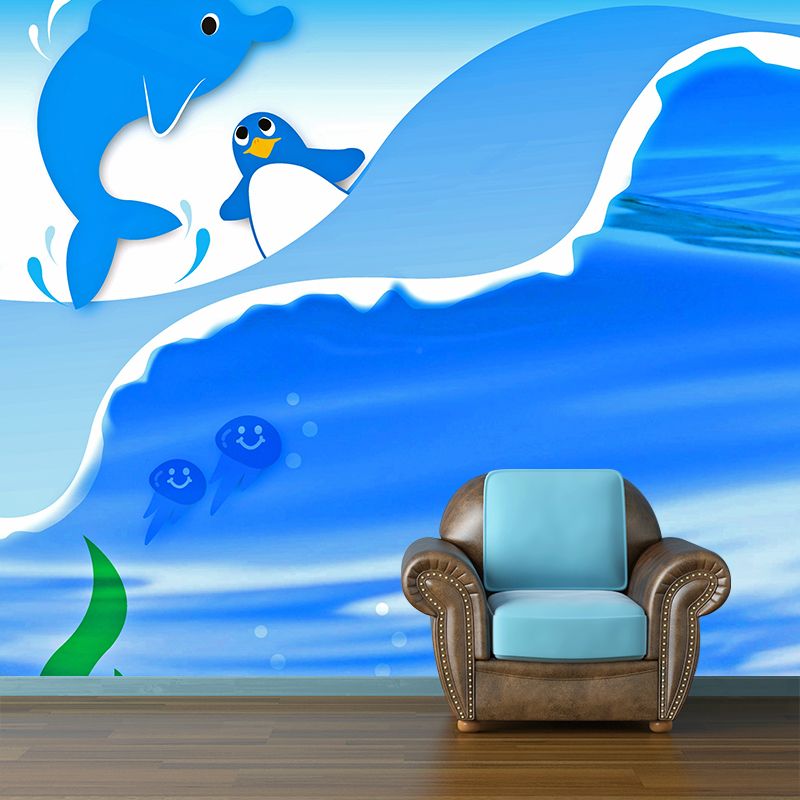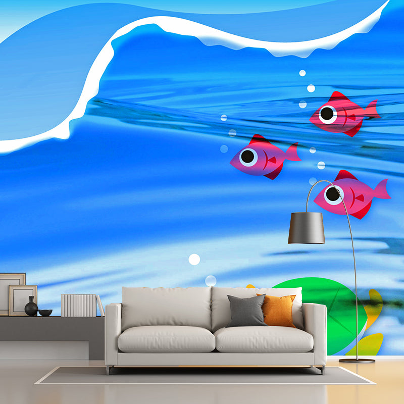 Sea World Illustration Mural Wallpaper Environment Friendly Living Room Wall Mural