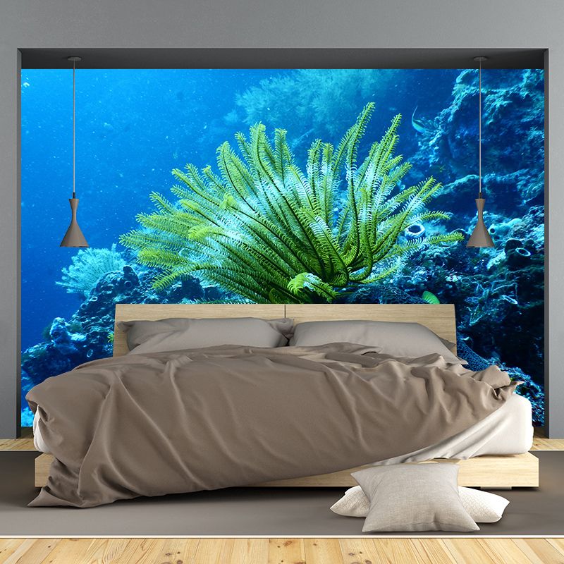 Seabed Mural Wallpaper Mildew Resistant Wall Covering for Children's Bedroom
