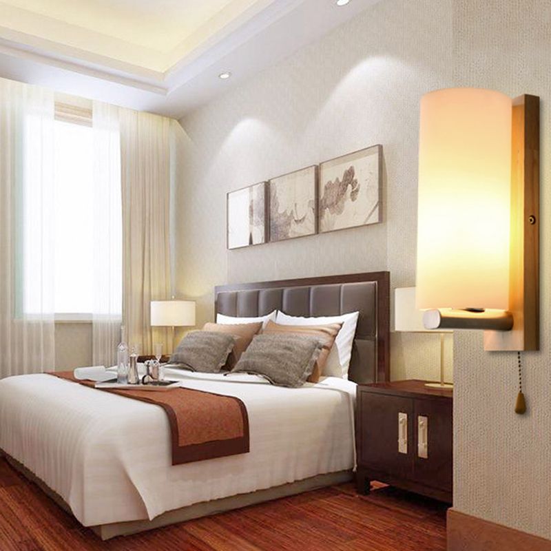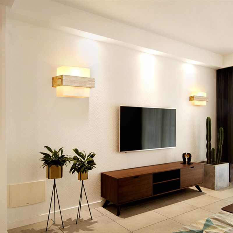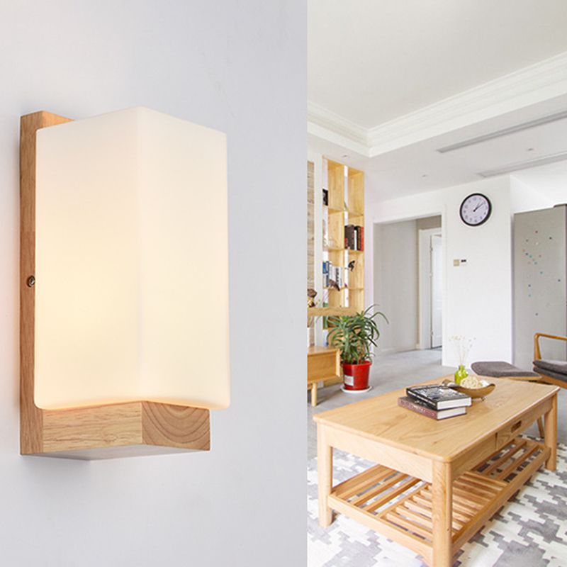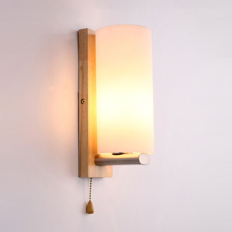 Shaded Wood Wall Lighting Fixture Nordic Style Beige Wall Mounted Light for Bedroom