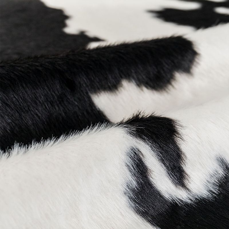 Shaggy Cow Skin Area Rug Black and White Contemporary Rug Polyester Non-Slip Washable Pet Friendly Carpet for Home